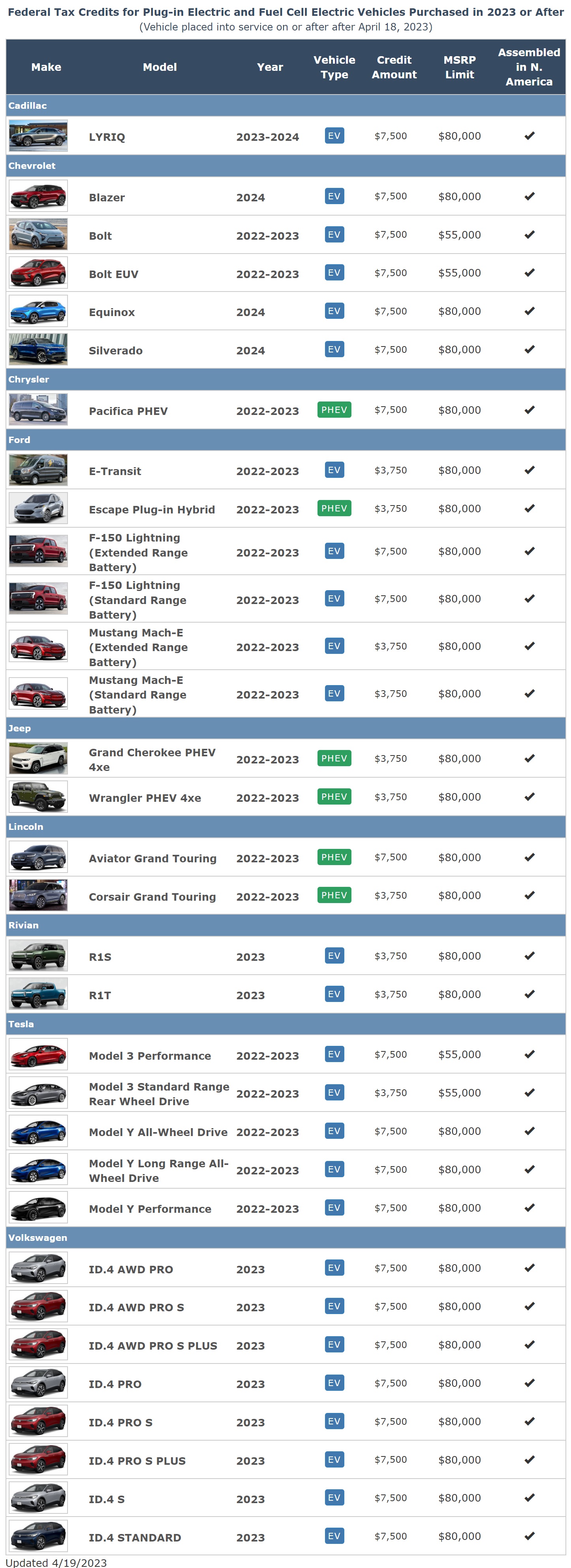 바로 어제인 2023년 4월 19일, 미국 환경청에서 보조금 지급 대상 차종을 공개하였습니다.