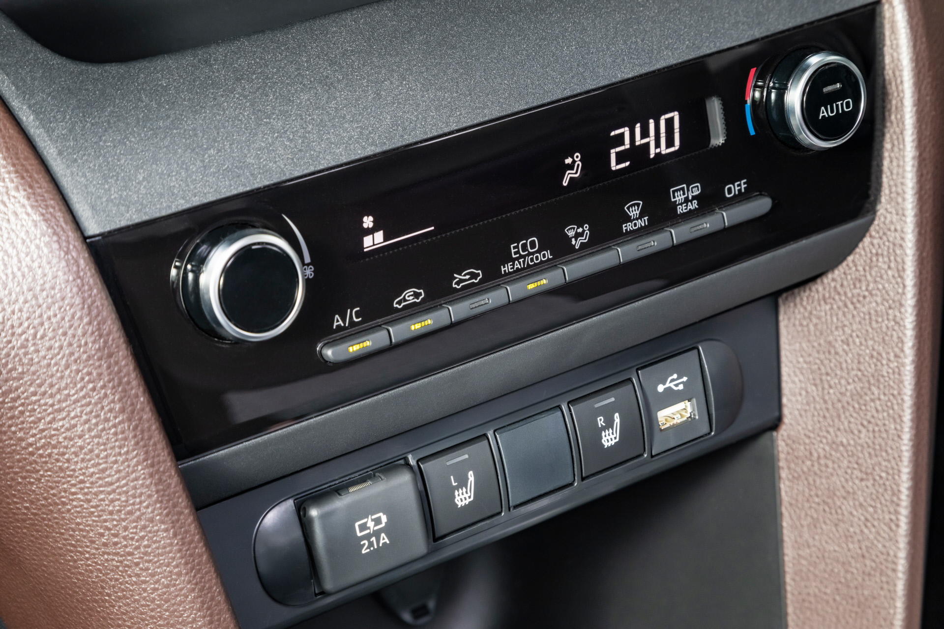 중앙 인포테인먼트 모니터에서부터 센터 콘솔까지 세로 방향으로 흐르는 디자인으로 되어 있고, 운전자 편의성을 위하여 운전자 쪽으로 기울어져 있습니다.