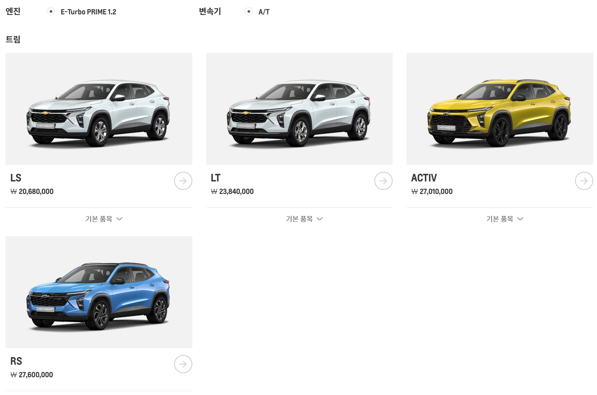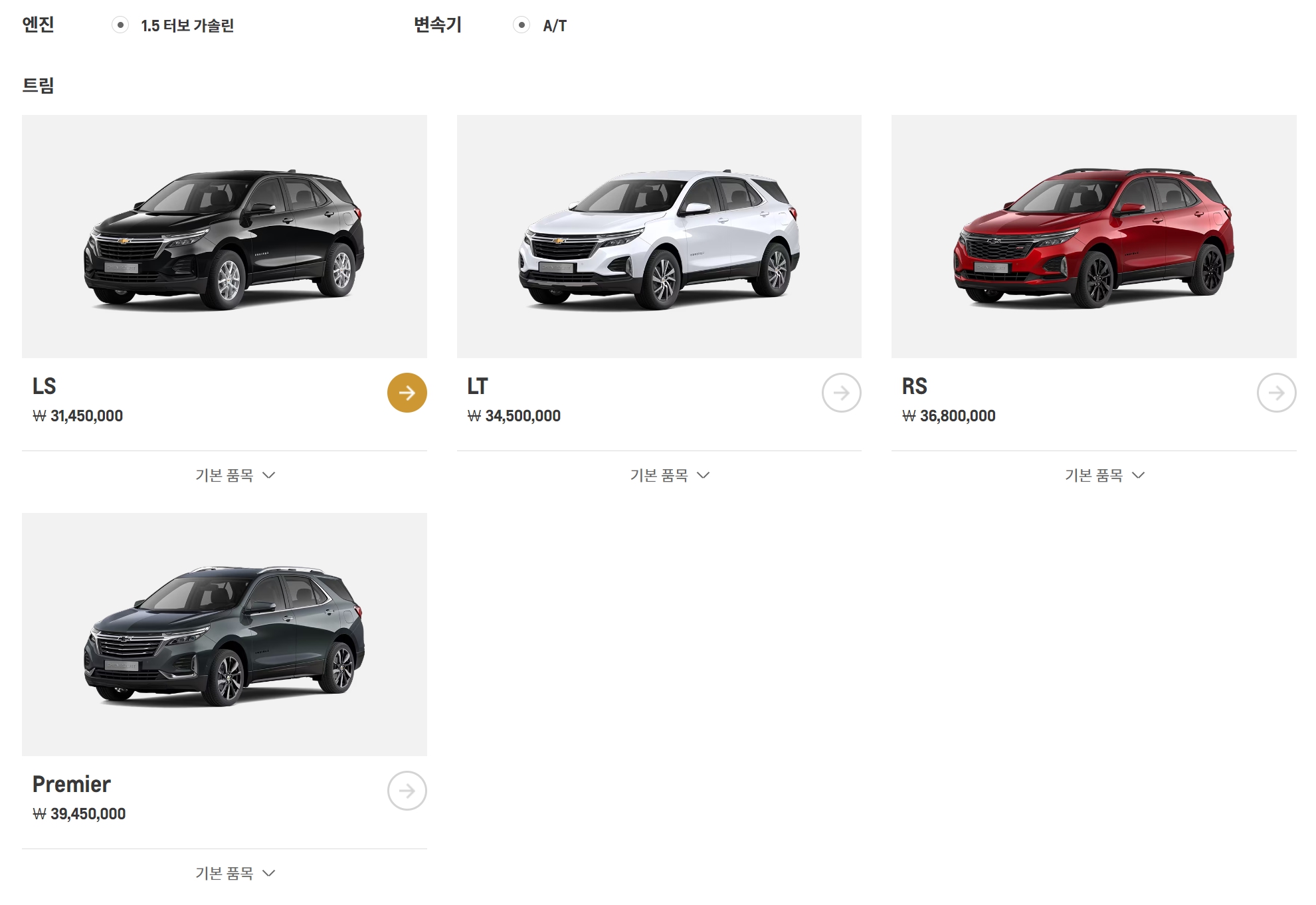 쉐보레의 경우, 일반적으로 트림을 나누는 기준은 위와 같습니다.