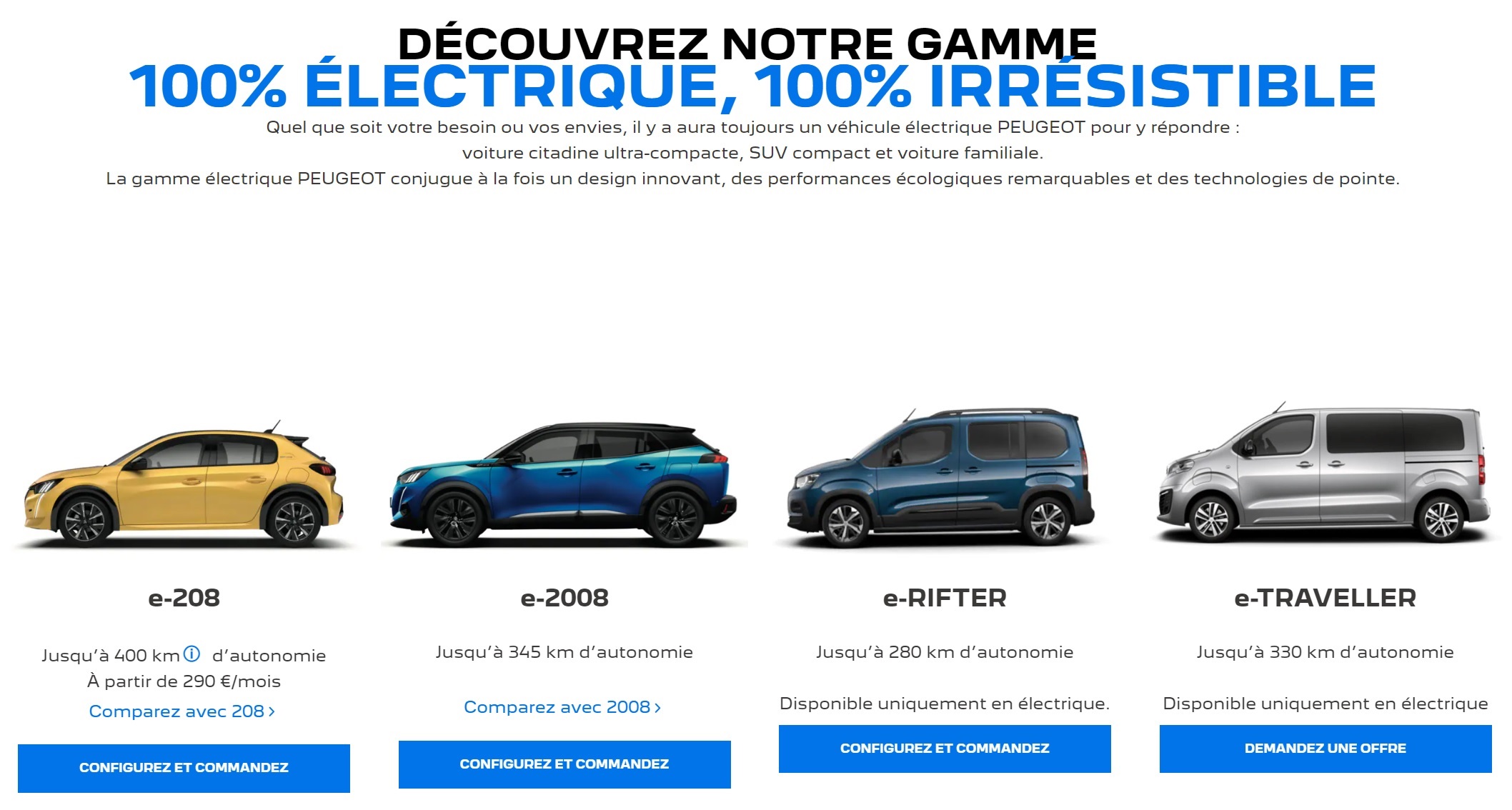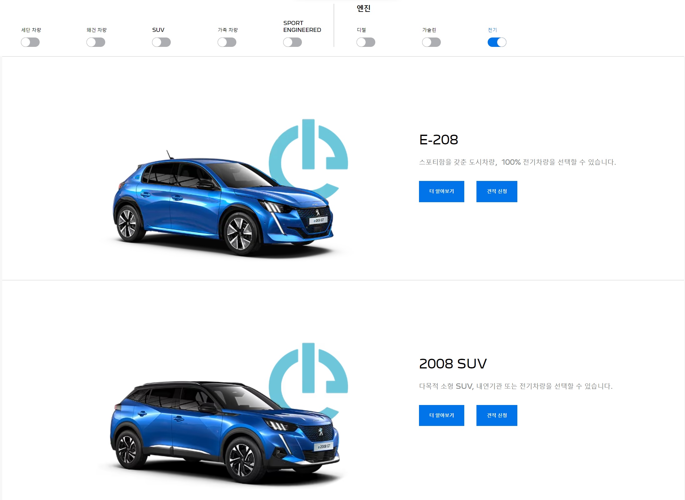 국내뿐만이 아니라, 프랑스 푸조 홈페이지를 가보더라도, 현재 판매 중인 전기차는 4종이 전부입니다.