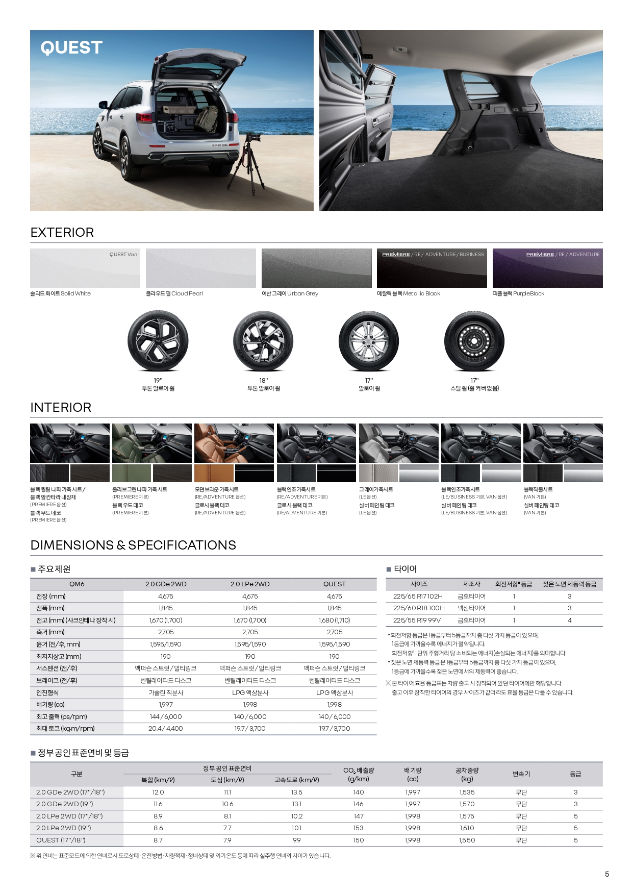 QM6 밴(퀘스트) 모델 가격표입니다.