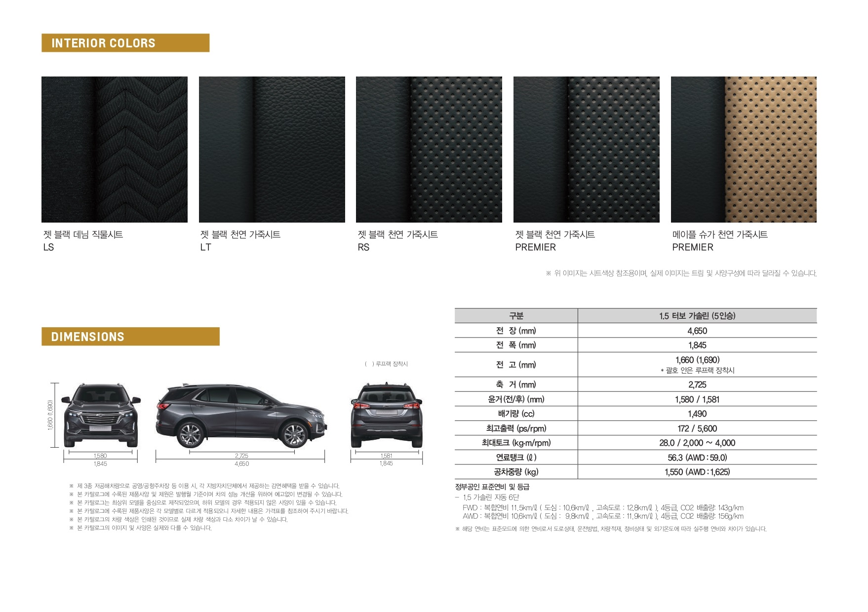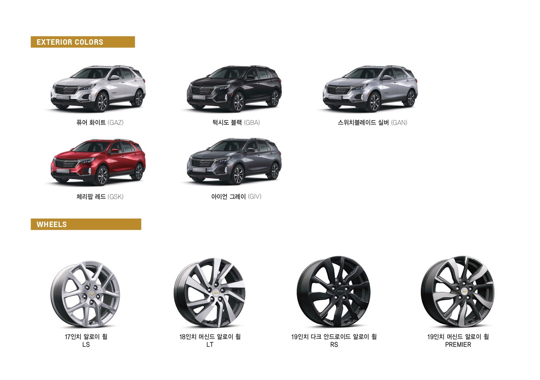 가격표 다음 장에 있는 이쿼녹스의 컬러 구성과 휠 등이고요.