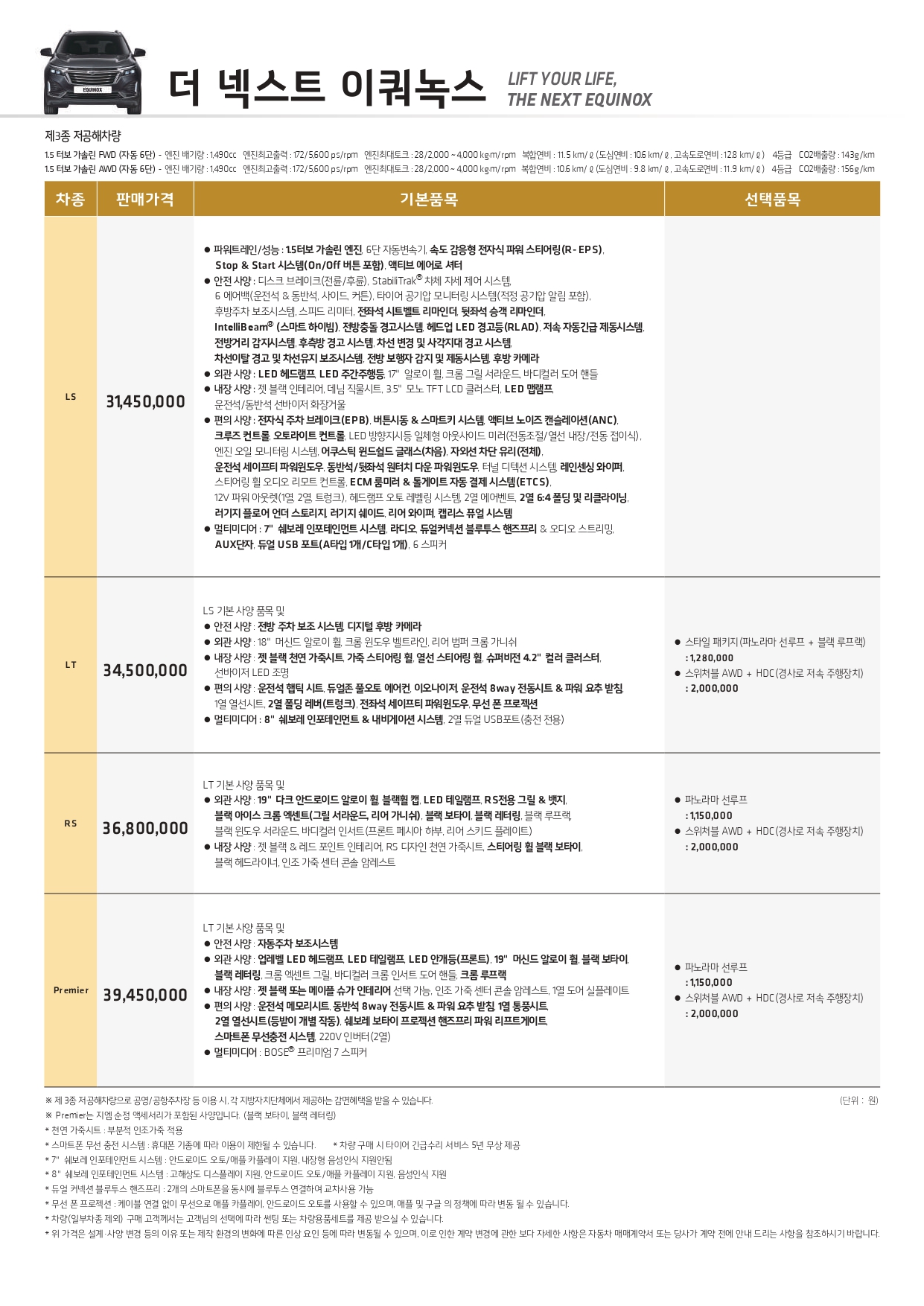 이제 가장 중요한 2022 / 2023 쉐보레 이쿼녹스의 가격표를 보시겠습니다.