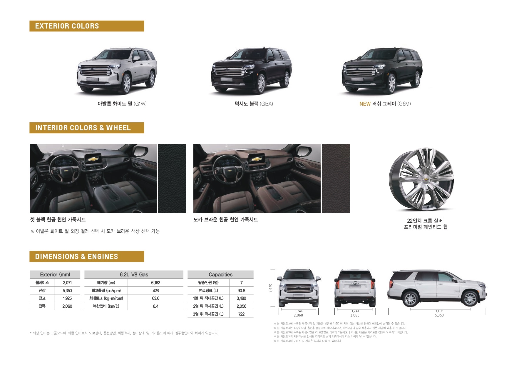 다음은 쉐보레 타호의 컬러와 휠, 그리고 제원 정보입니다.