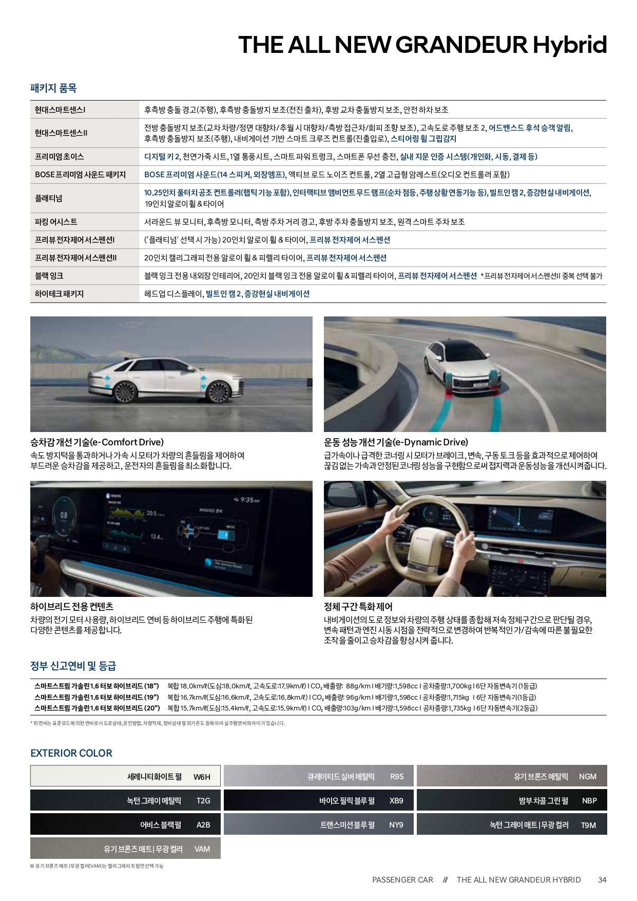 그랜저 하이브리드 가격표입니다.