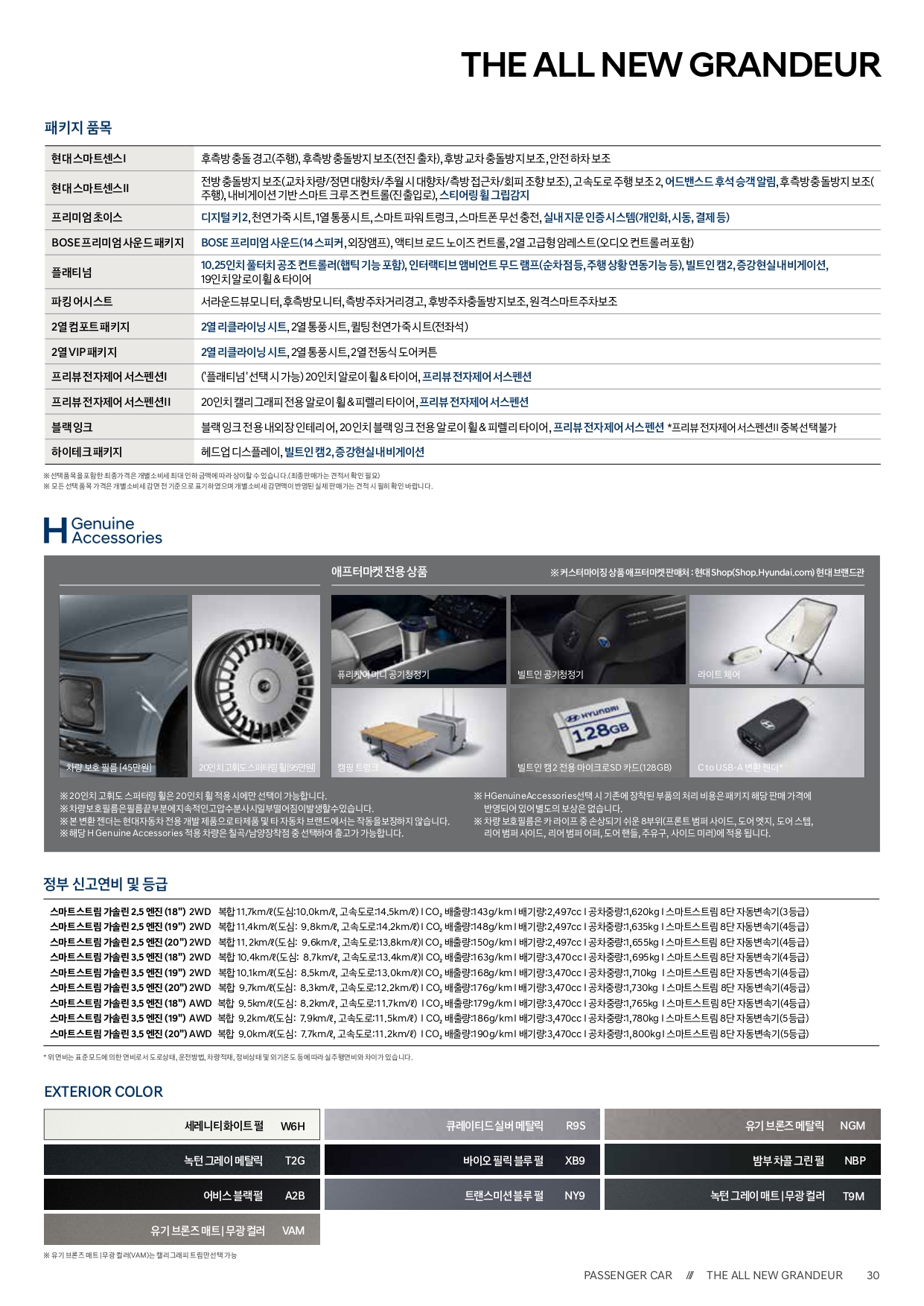 마지막으로 그랜저의 크기, 제원이 나타나 있는 페이지입니다.