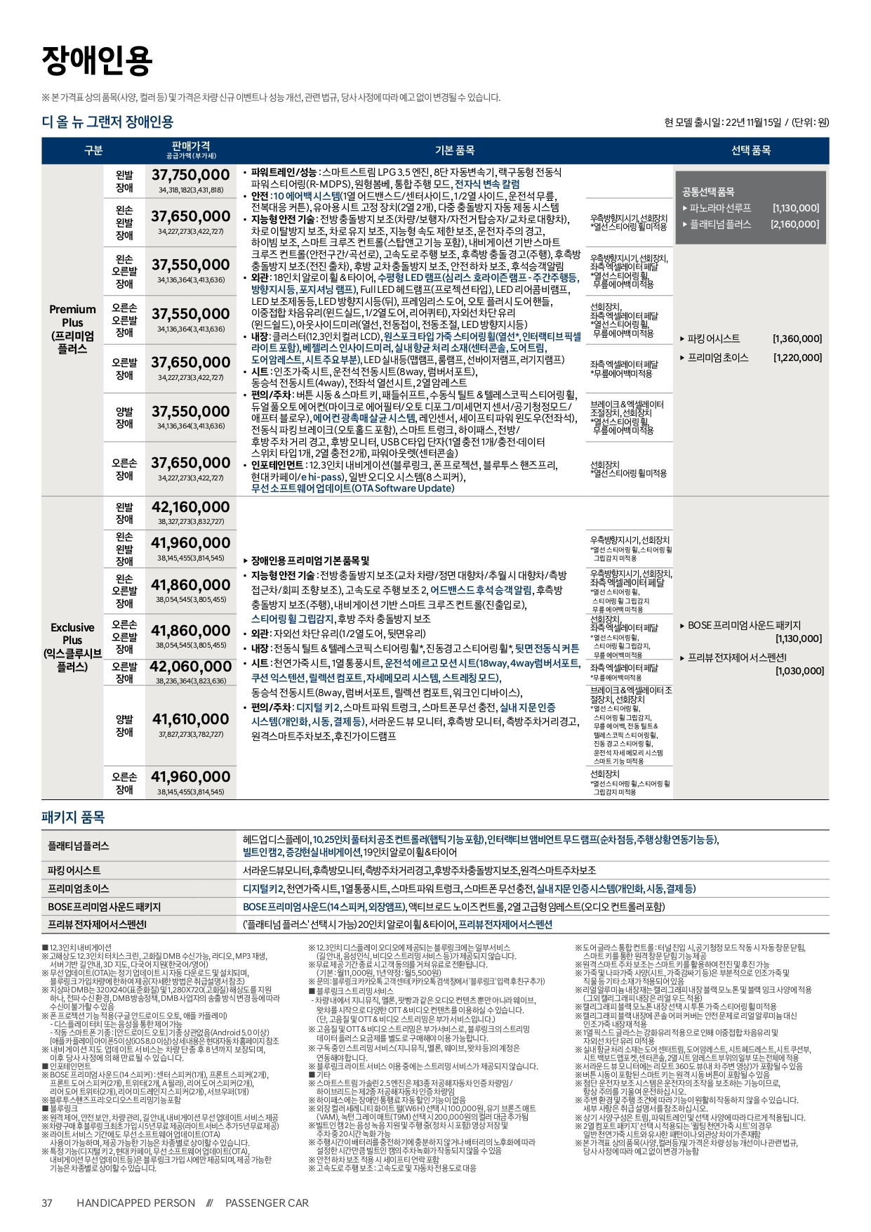 LPG 3.5 장애인용 가격표입니다.