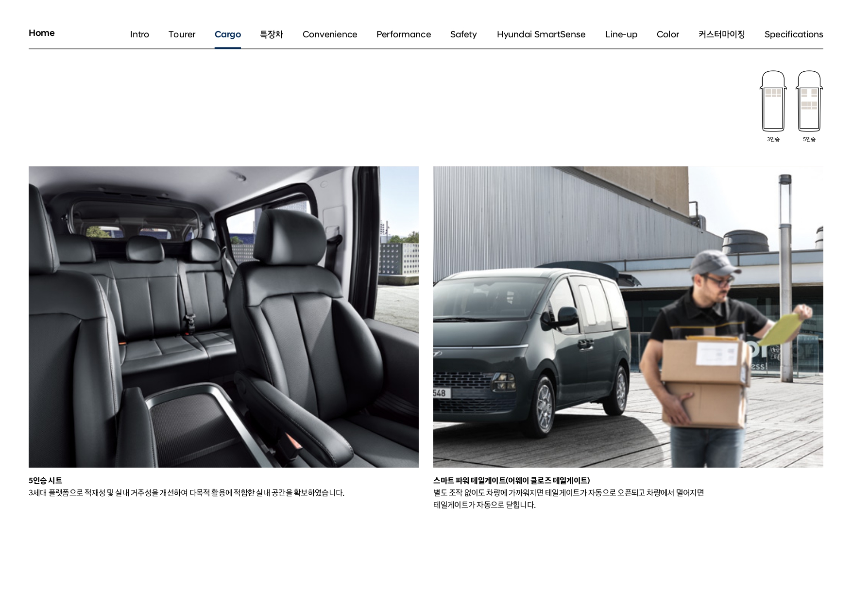 3인승과 5인승은 적재 중량 또한 다르기 때문에 이 부분 사전에 고려하셔서 선택하셔야 합니다.