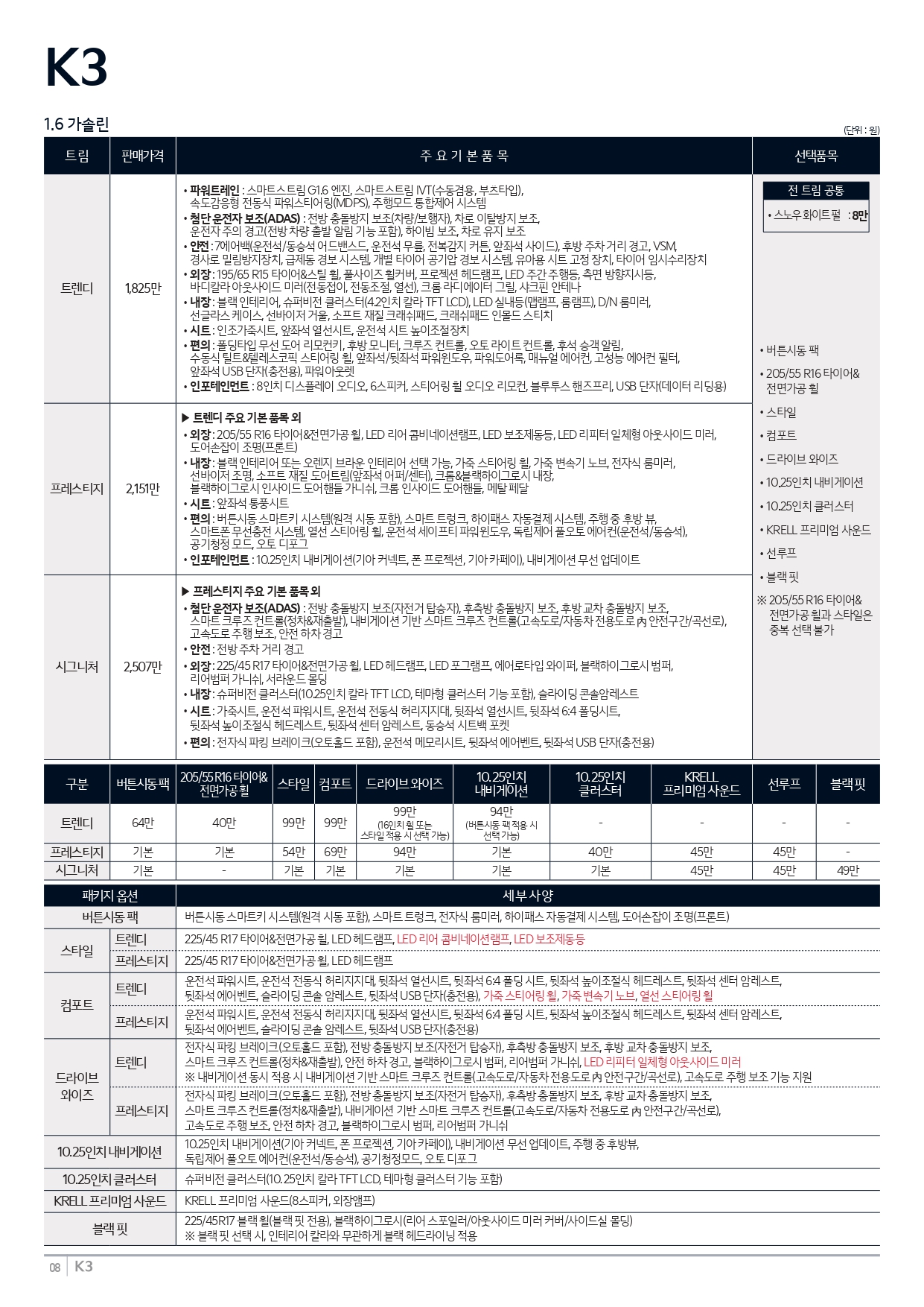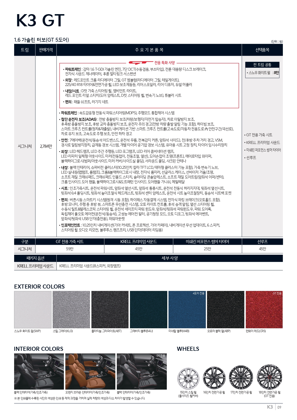 K3 GT 가격표