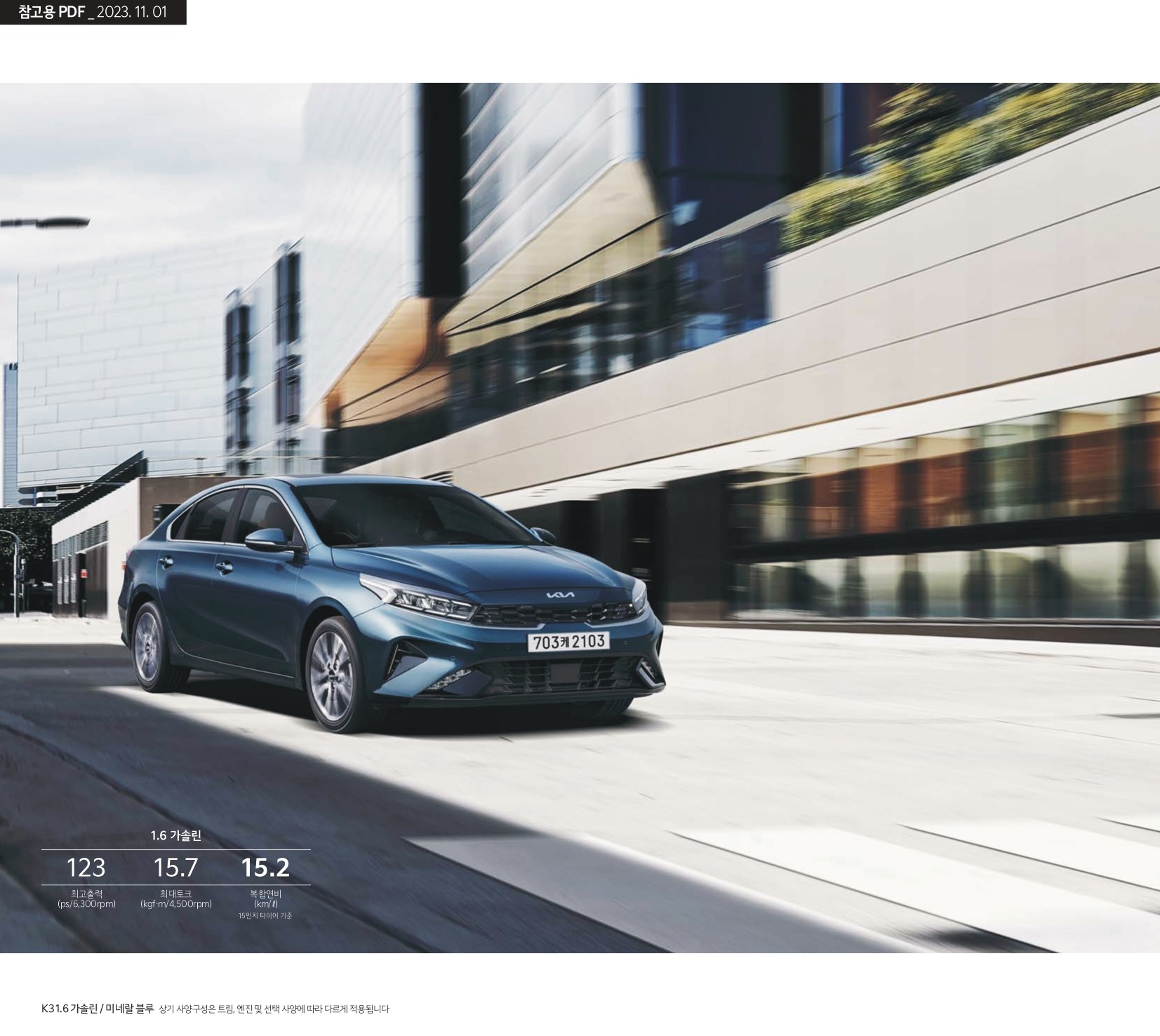 일반 K3 세단은 1.6 가솔린 자연흡기 엔진 + CVT