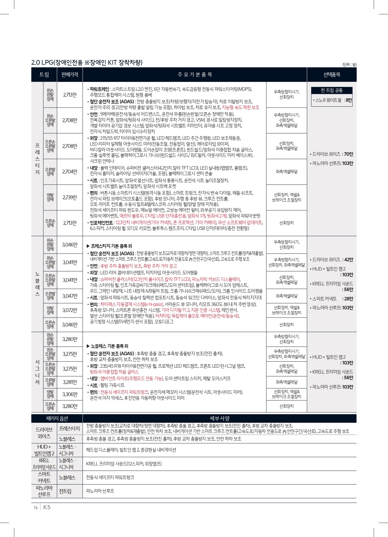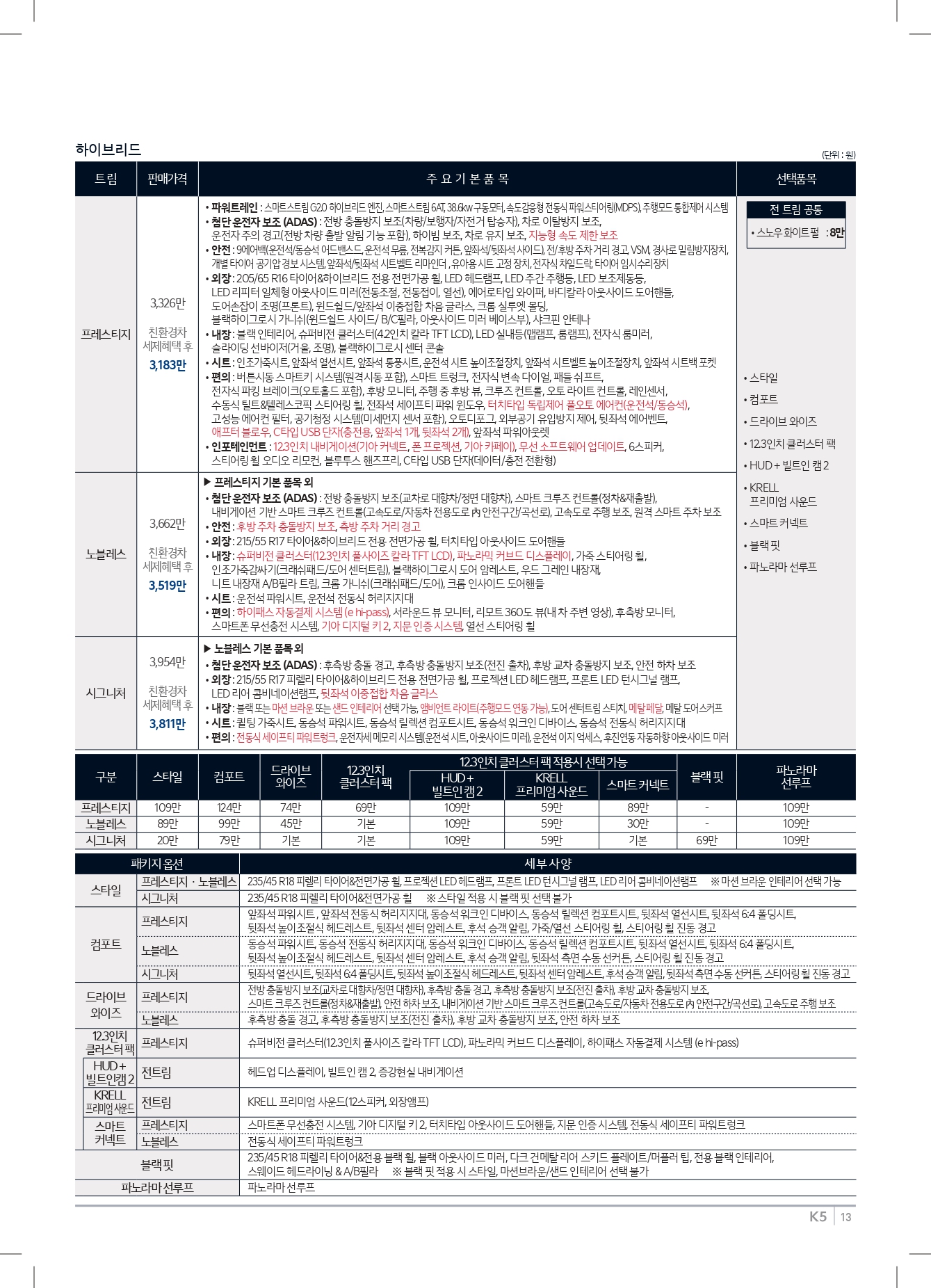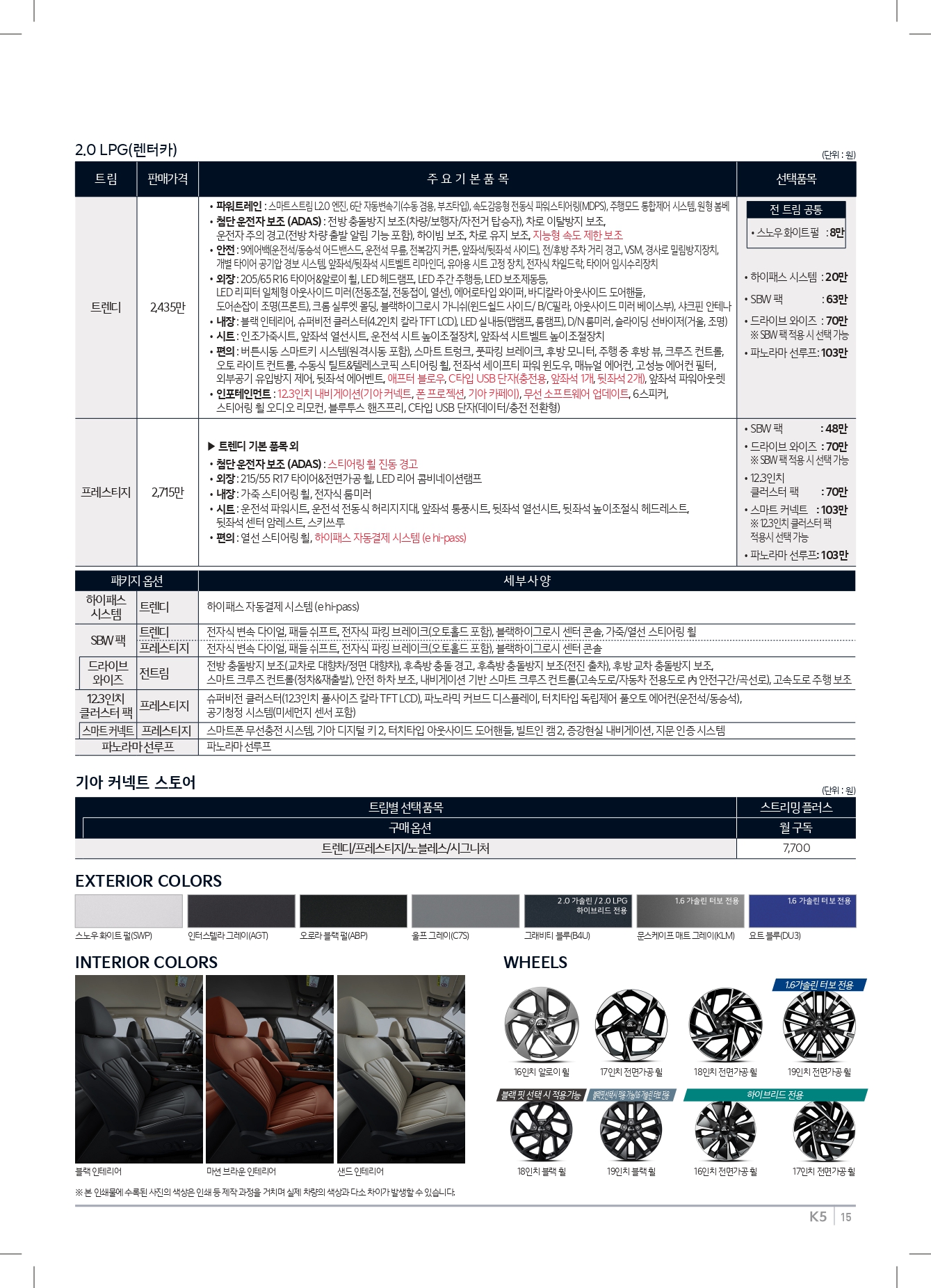 마지막으로 2024 K5 가격표 및 카탈로그 원본을 아래와 같이 공유드립니다.