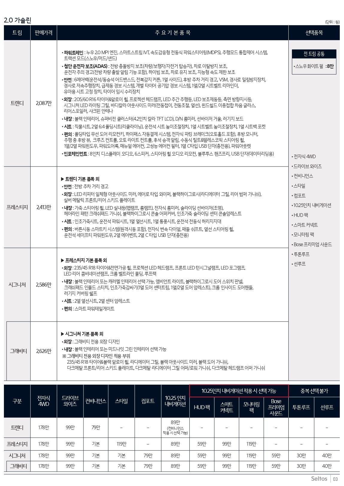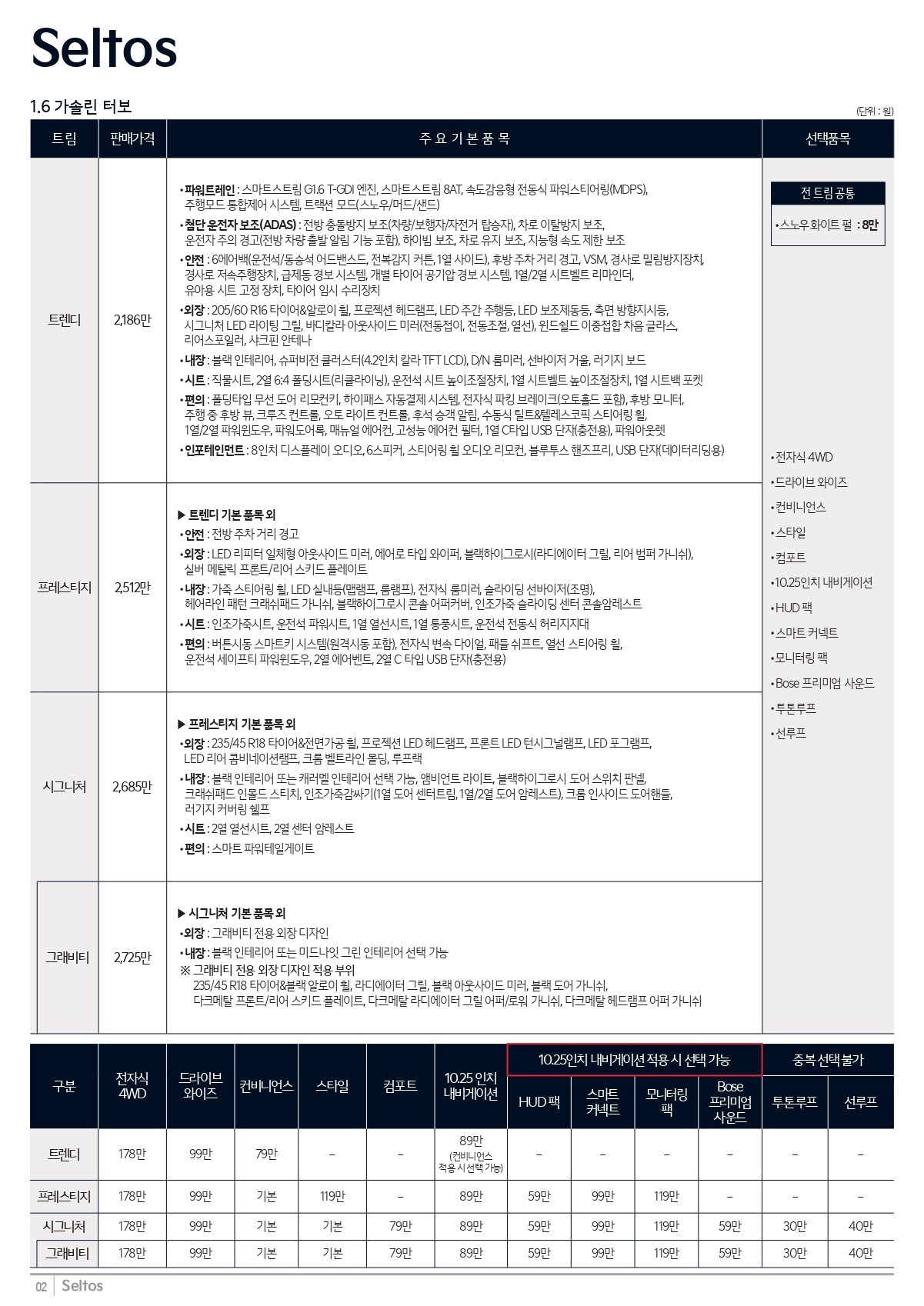 2024 셀토스 가격표 및 카탈로그 원본도 함께 공유드리오니, 필요하신 분께서는 다운 받아가시기 바랍니다.