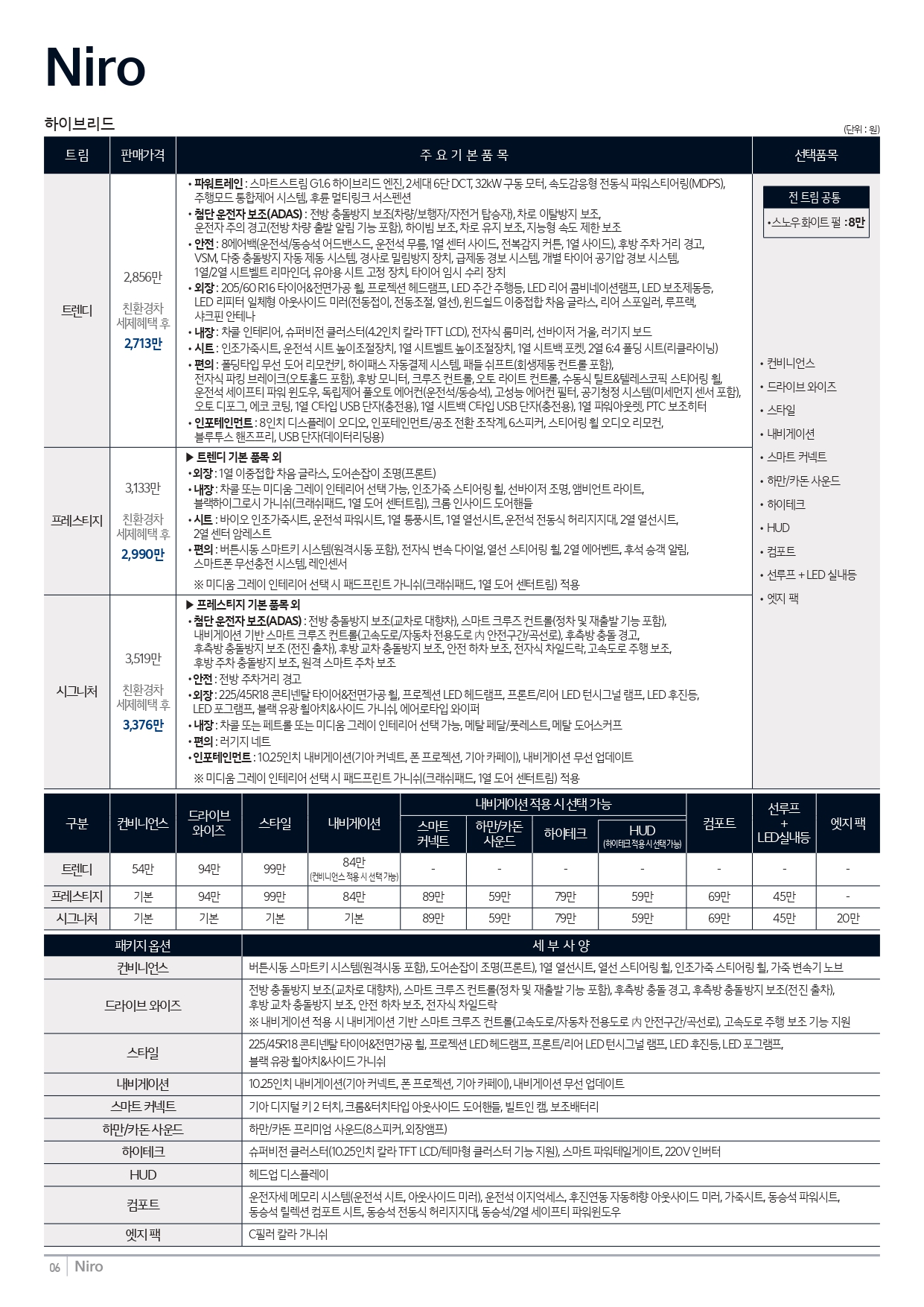 앞서 말씀드린 것처럼 니로는 일반 내연기관 차량이 없고, 하이브리드 차량이 기본 모델이 됩니다.