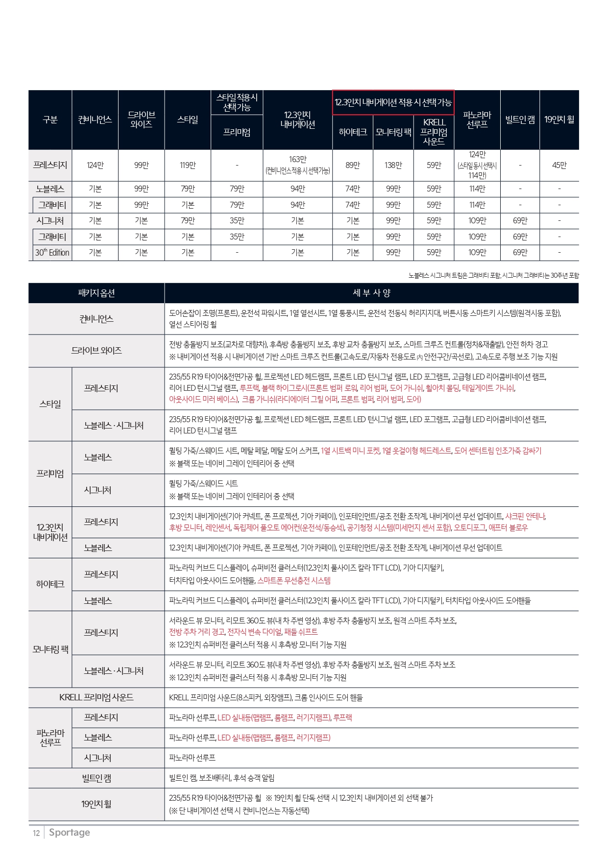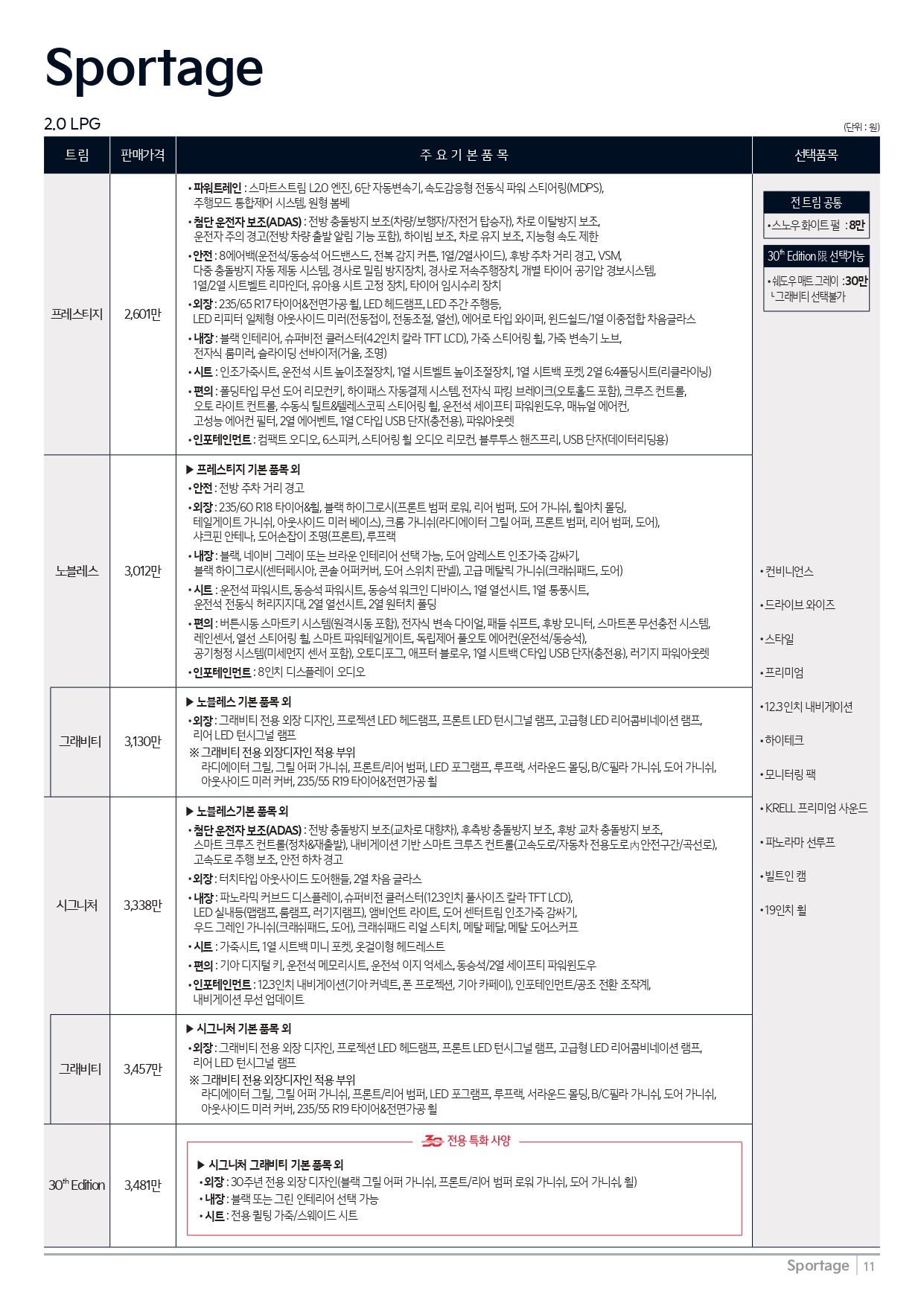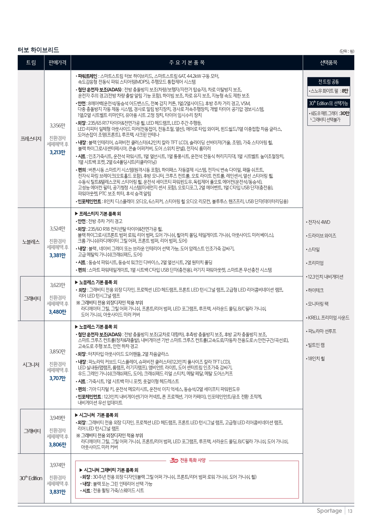 마지막으로 스포티지의 가격표 및 카탈로그 원본을 공유드리오니, 상세 내용이나 고화질이 필요하신 분께서는 다운받아가시기 바랍니다.