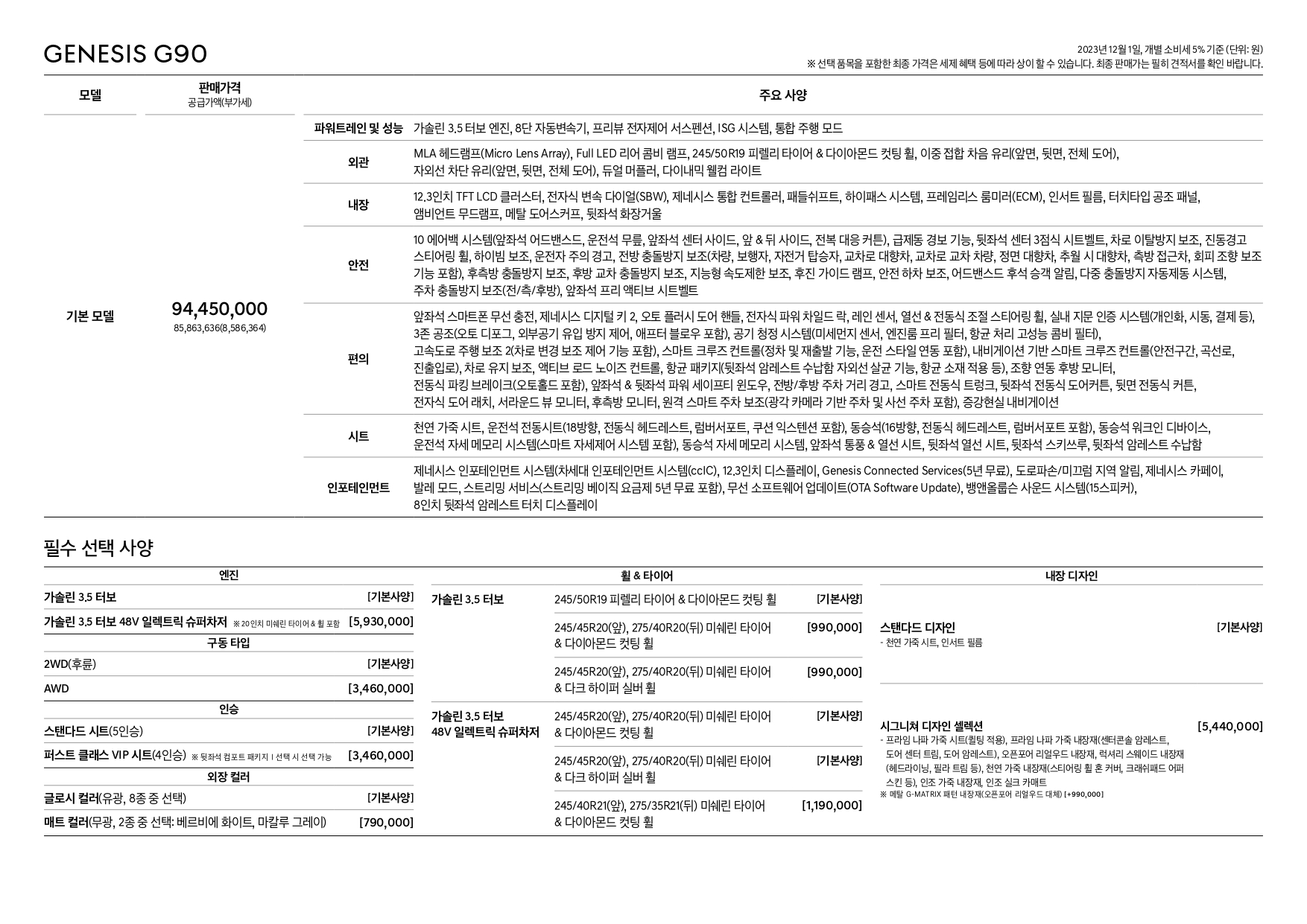 마지막으로 2023 제네시스 G90의 가격표 및 카탈로그 원본을 공유드리오니, 고화질이 필요하시거나, 상세 내용이 필요하신 분께서는 다운 받아가시기 바랍니다.