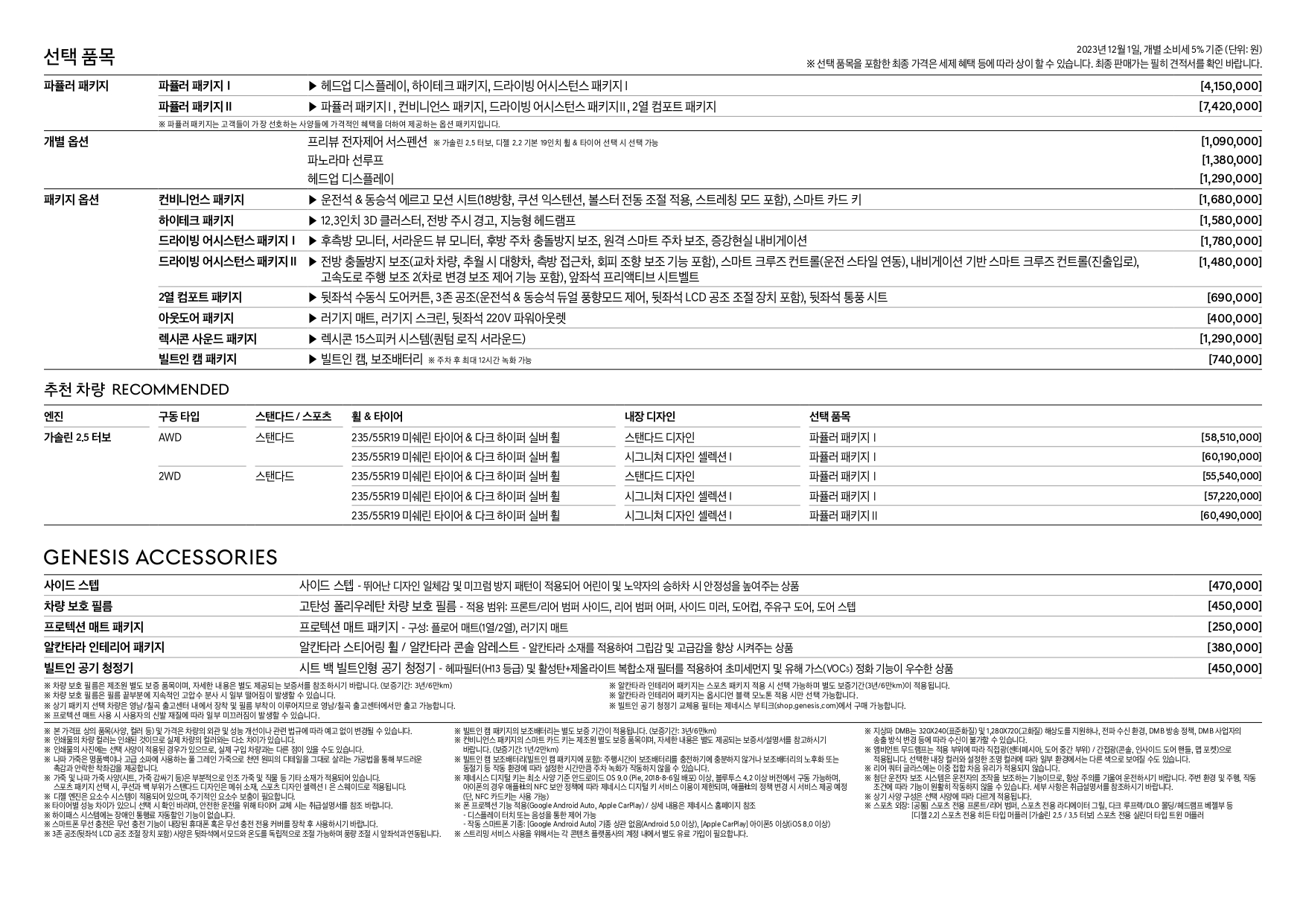타 제네시스 라인업과 마찬가지로, 기본 모델에 다양한 선택 옵션과 패키지 옵션을 가지고 있습니다.