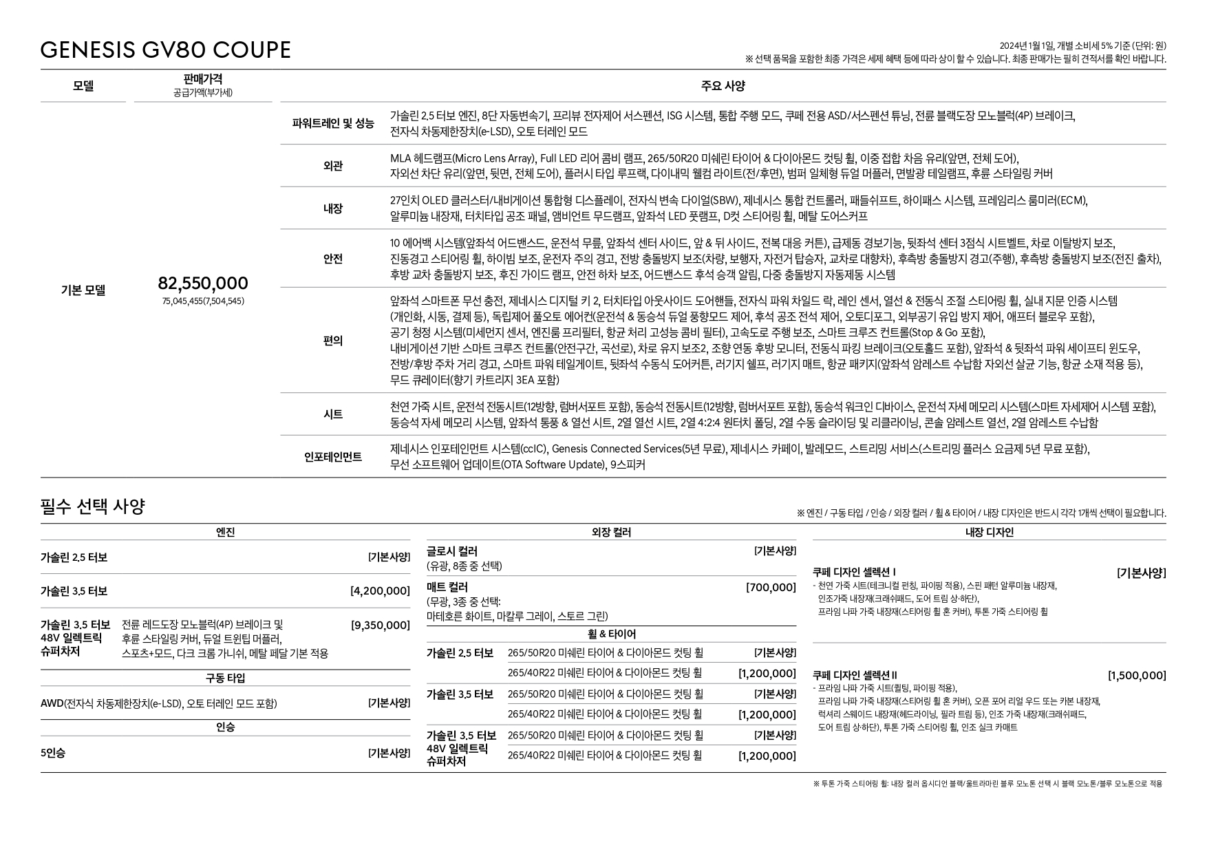 마지막으로 GV80 및 GV80 쿠페 의 가격표, 카탈로그 원본을 공유드립니다.