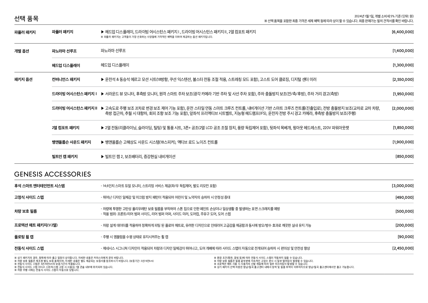 다만, 2.5 엔진 대비 추가 가격이 935만 원이나 되기 때문에, 선택을 하시는 분은 많지 않을 것으로 생각됩니다.