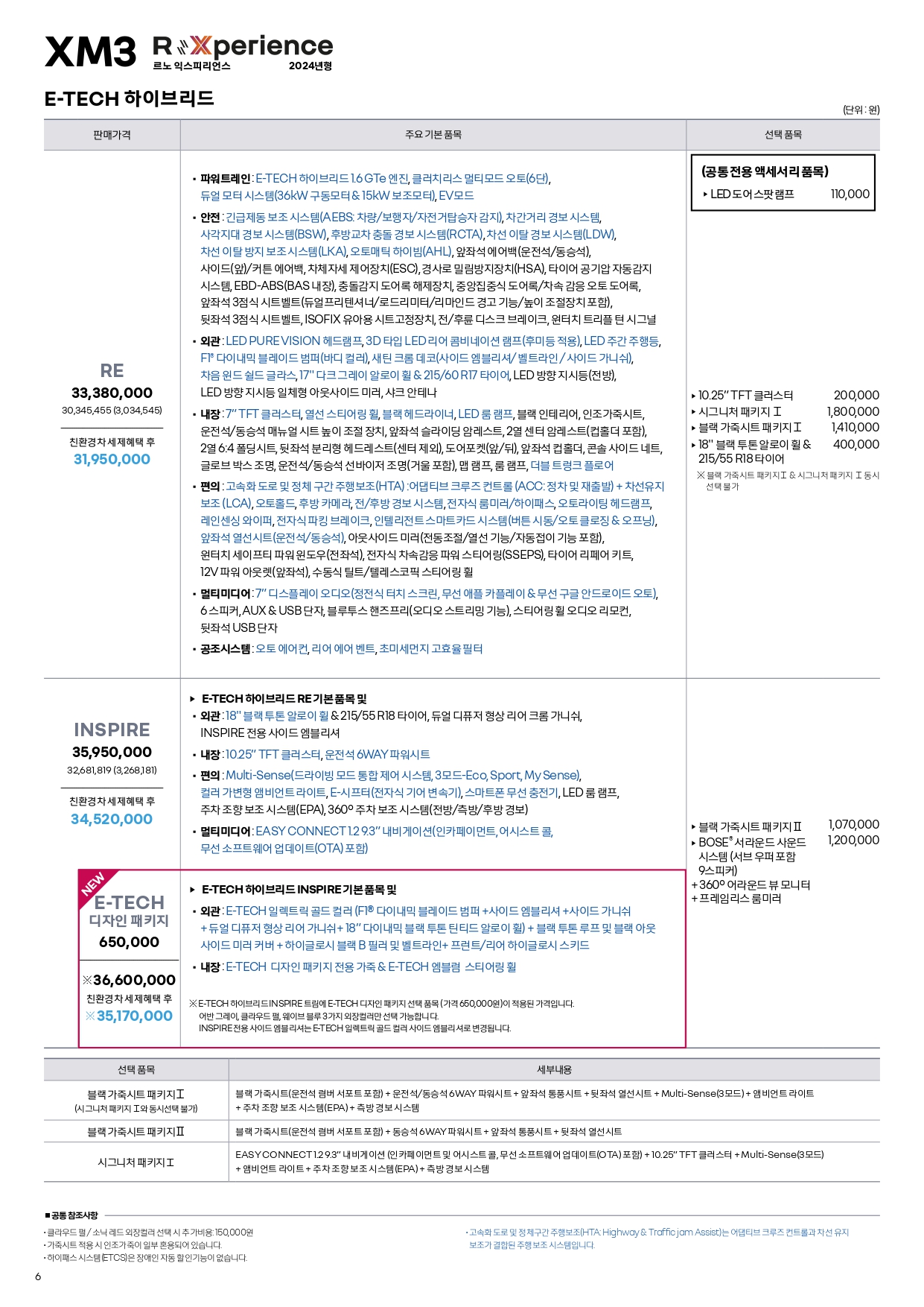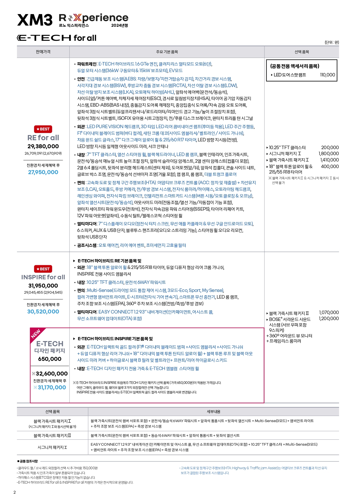 마지막으로 24년 1월에 발행된 따끈따끈한 XM3 카탈로그와 가격표입니다.