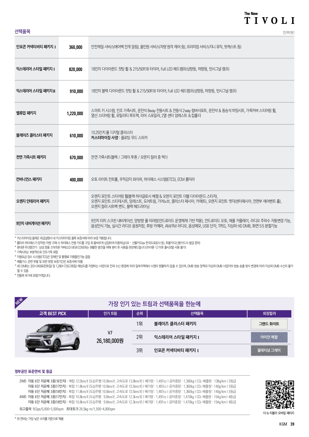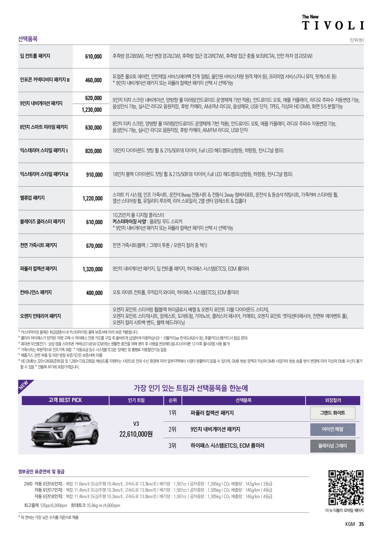 개인적으로는 다운사이징 터보 엔진을 선호하는 편이긴 하지만, 1.5나 1.6은 세금 차이도 크지 않고, 티볼리 차량 성격을 고려하면 그냥 1.6 기본형 정도가 괜찮아 보입니다.