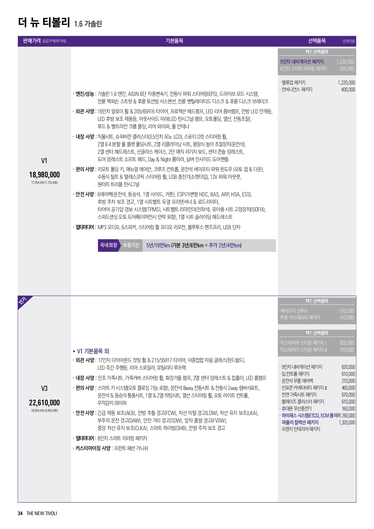V1과 V3의 가격 차이가 363만 원이나 나기 때문에, 가성비를 고려한다면, V1에 밸류업 패키지 등과 같은 선택옵션 조합이 괜찮아 보입니다.