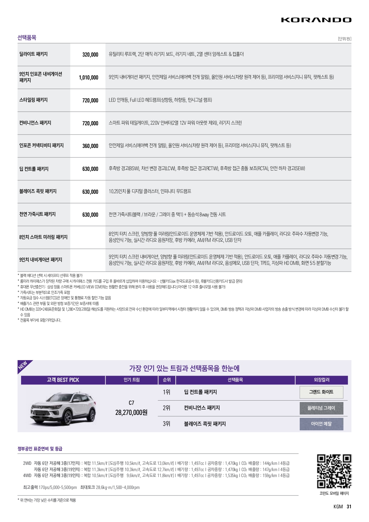 참고로, 가장 인기 있는 트림은 C7이고, 인기 외장 컬러는 그랜드 화이트입니다.
