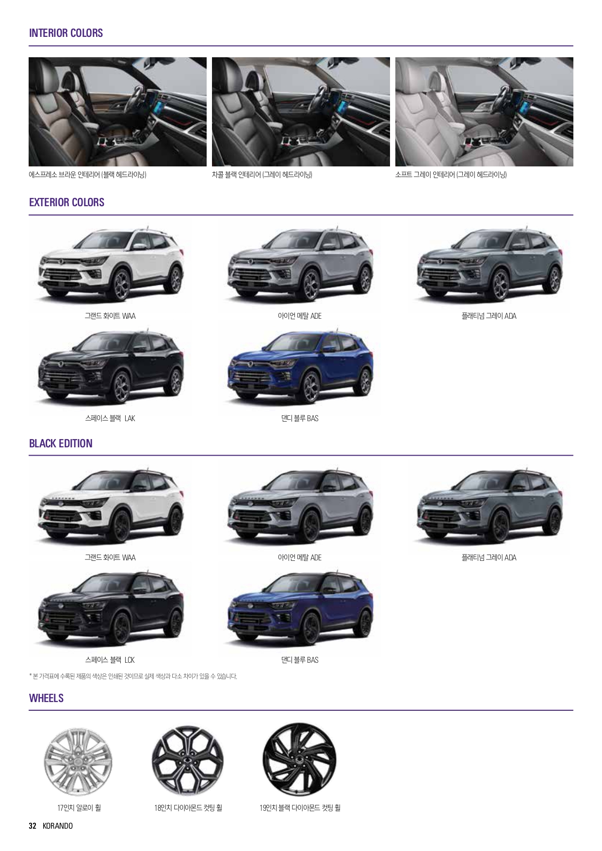 가격표가 워낙 단순하고, 소개해 드릴 만한 것도 없어서 컬러 및 휠 정보도 가져와보았습니다.