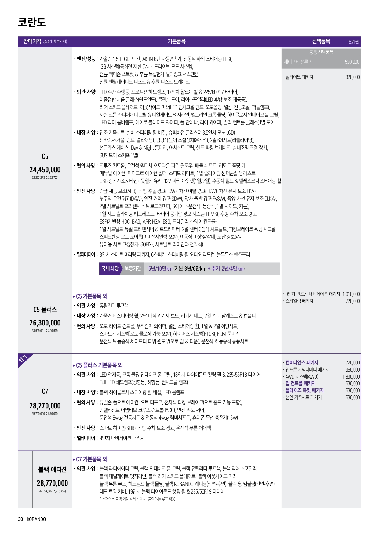 기본형인 C5에서 선택 옵션을 선택할 수 있는 게 거의 없어서, C5 플러스나 C7으로 자연스럽게 넘어갈 수밖에 없는 구조의 가격표입니다.