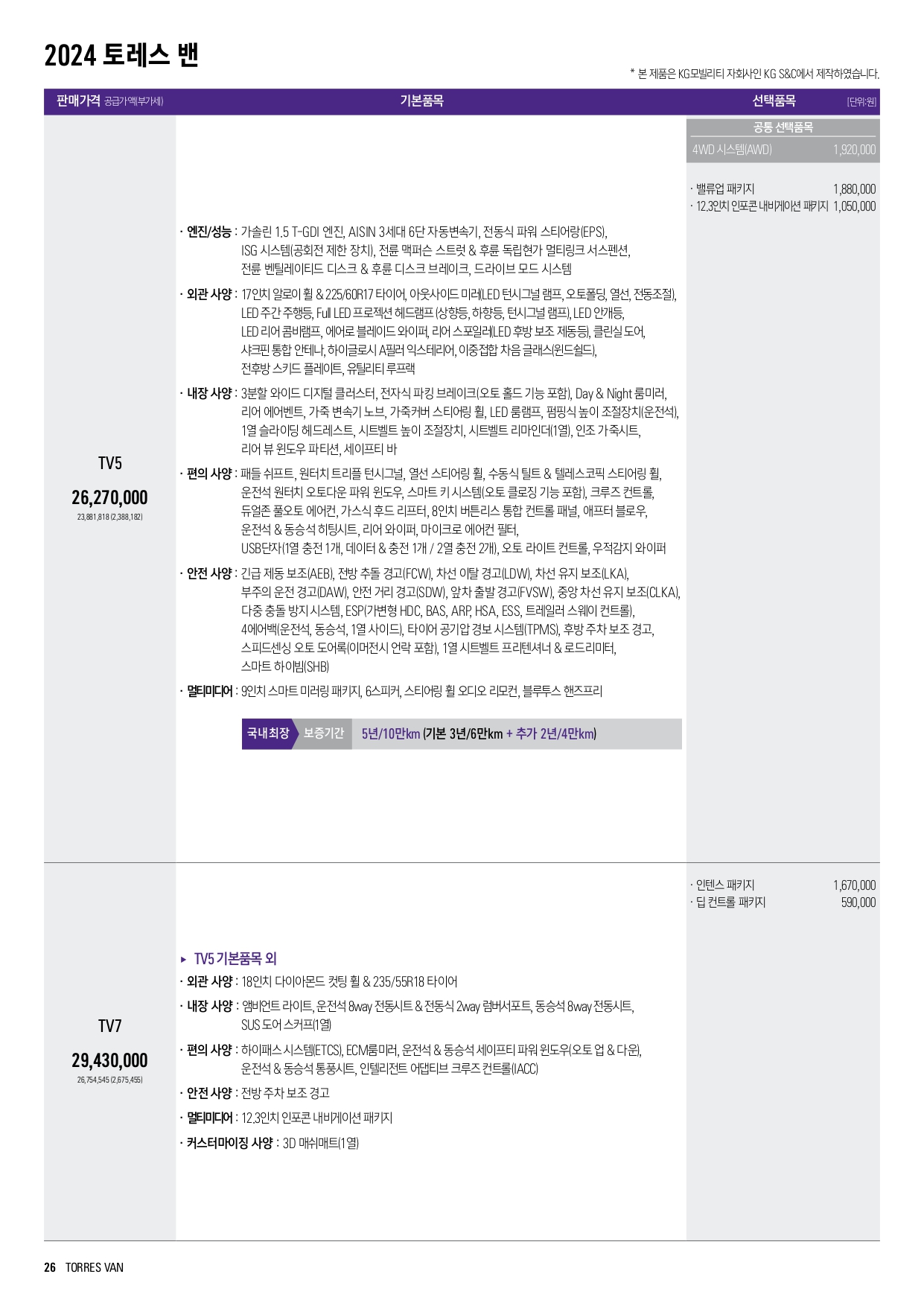 2024 토레스 밴 가격표