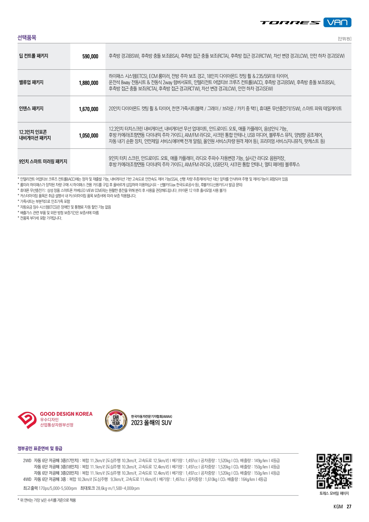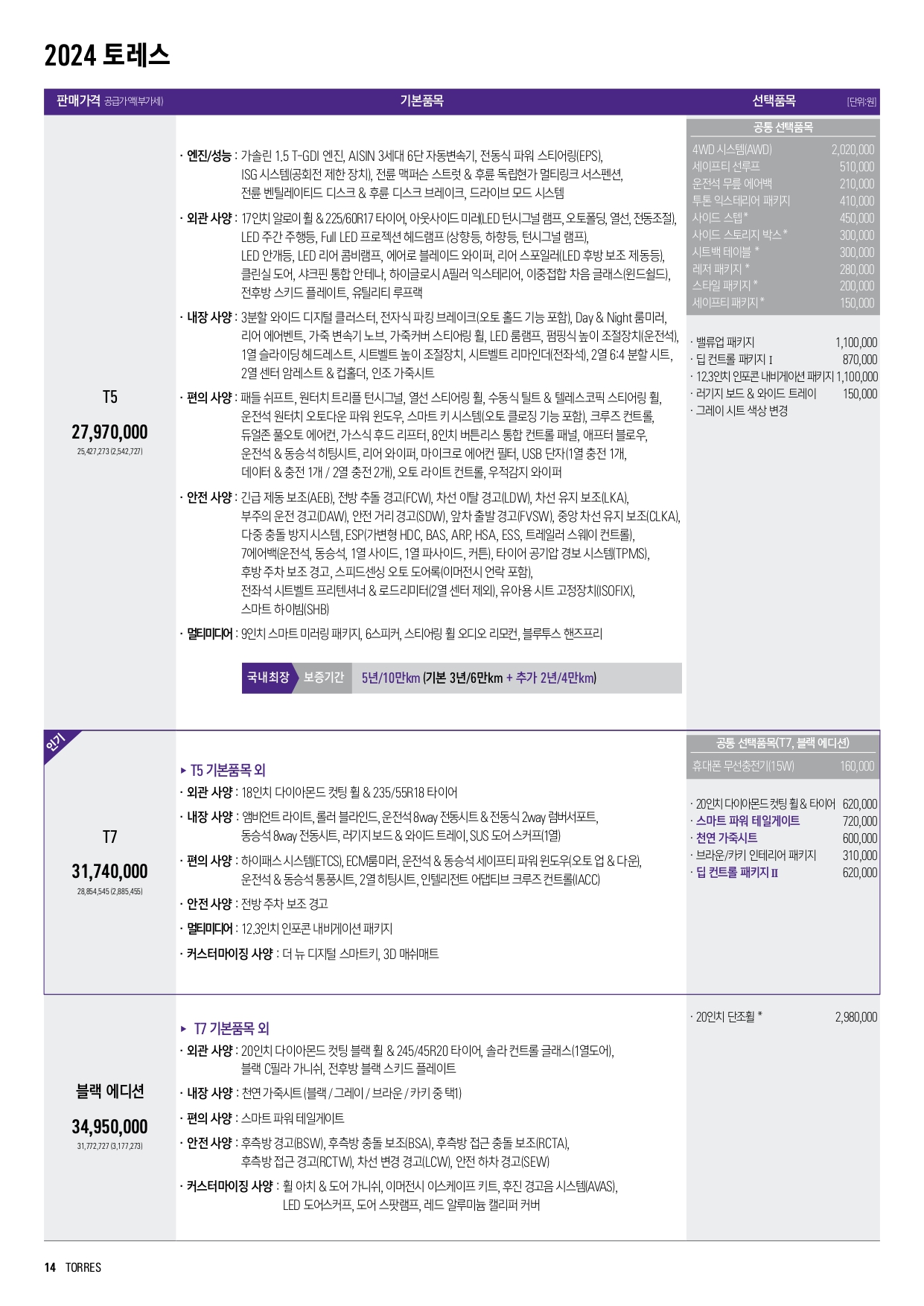 2024 토레스 가격표에 대한 설명은 여기까지만 하도록 하고, 원본 가격표 아래에 공유드립니다!