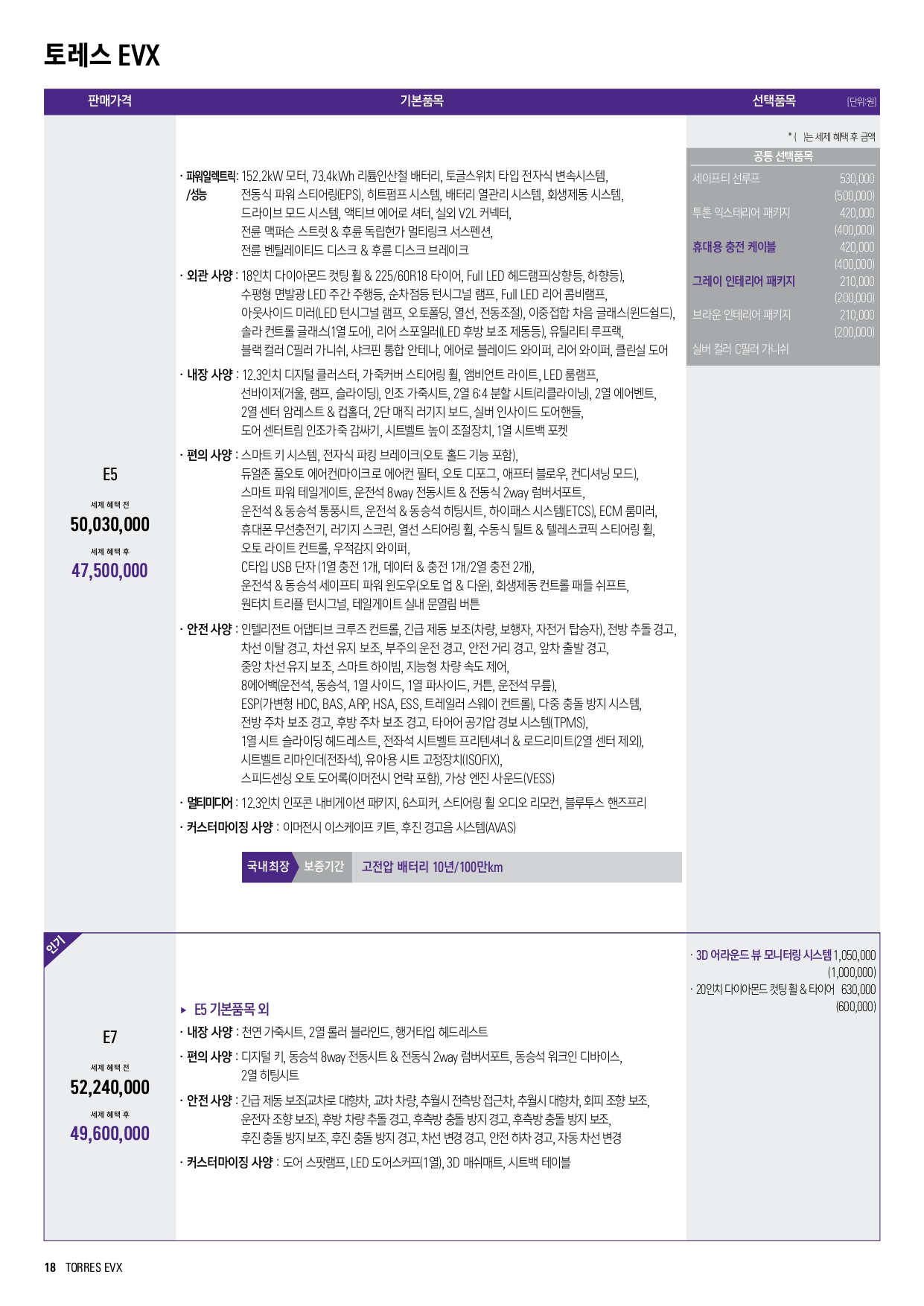 토레스 EVX (전기차) 가격표
