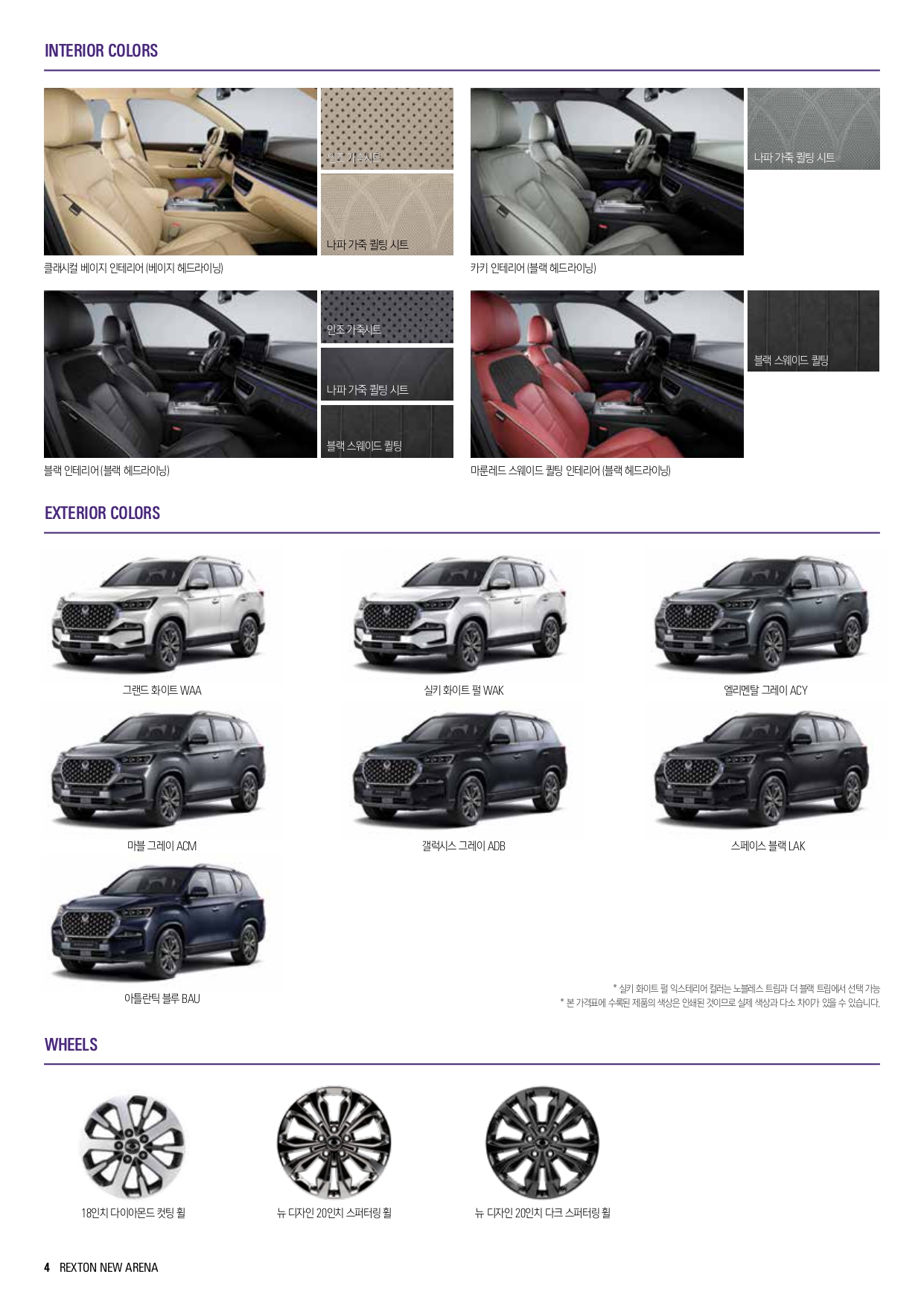 가격표 자체가 단출하여, 컬러 표 및 휠 정보도 가져와 보았습니다.