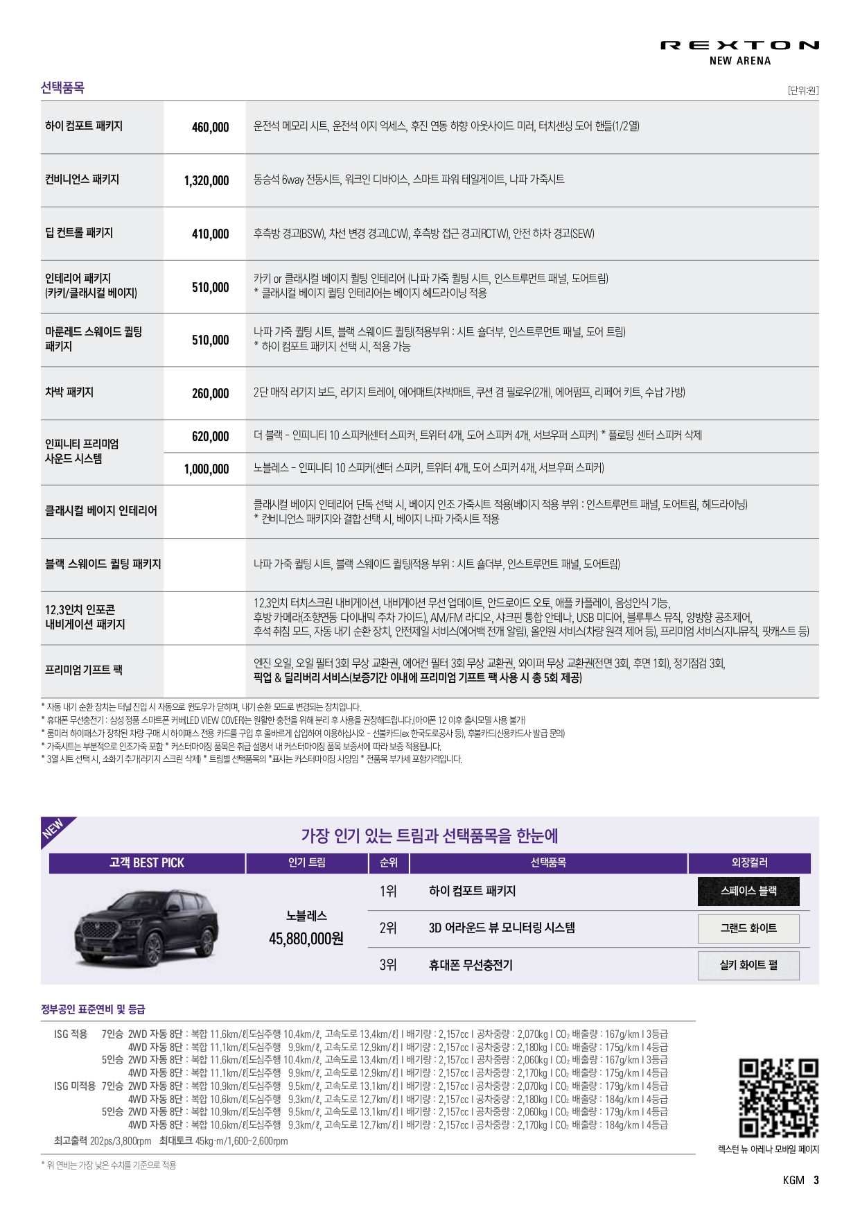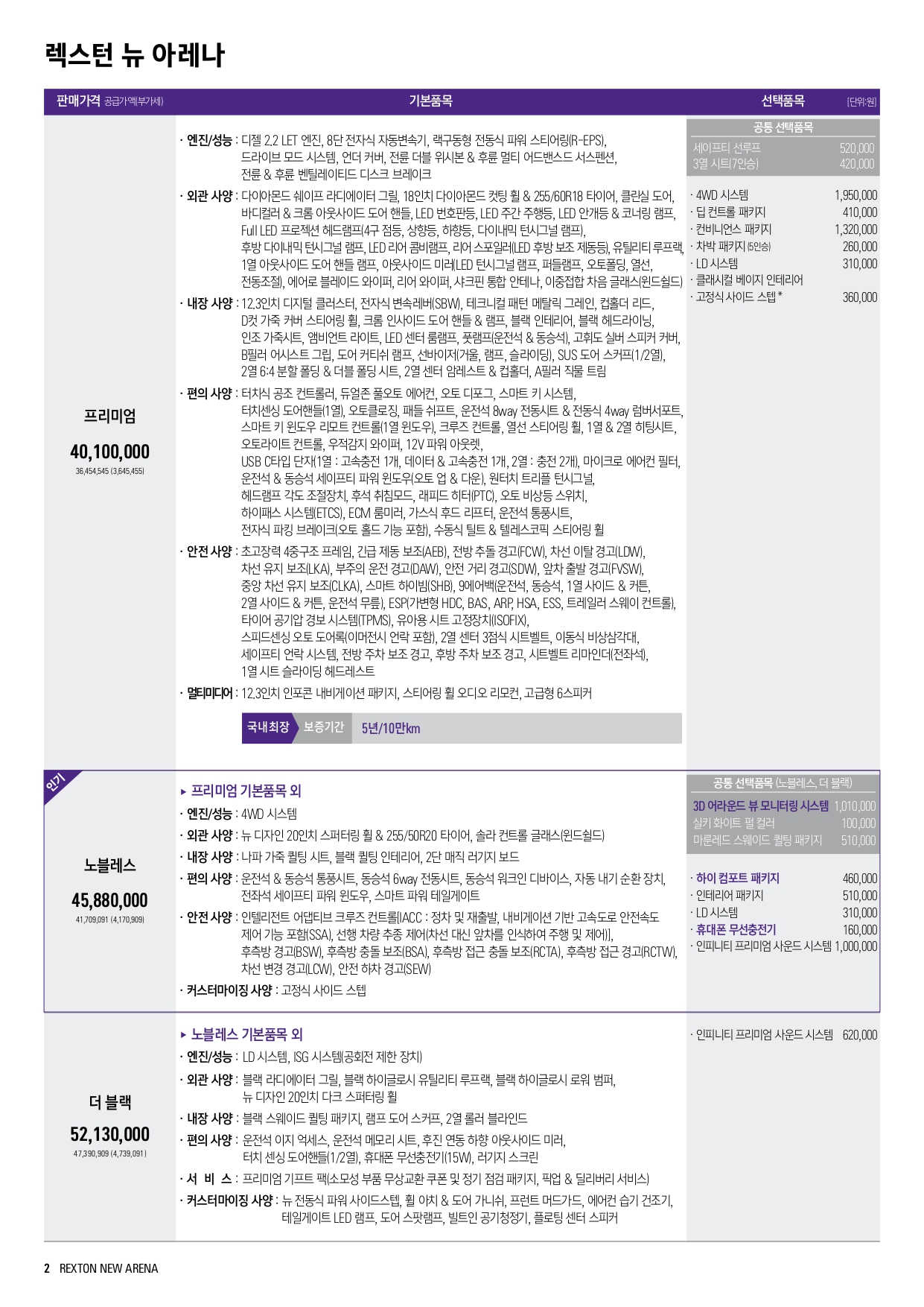2024 렉스턴 뉴 아레나 가격표