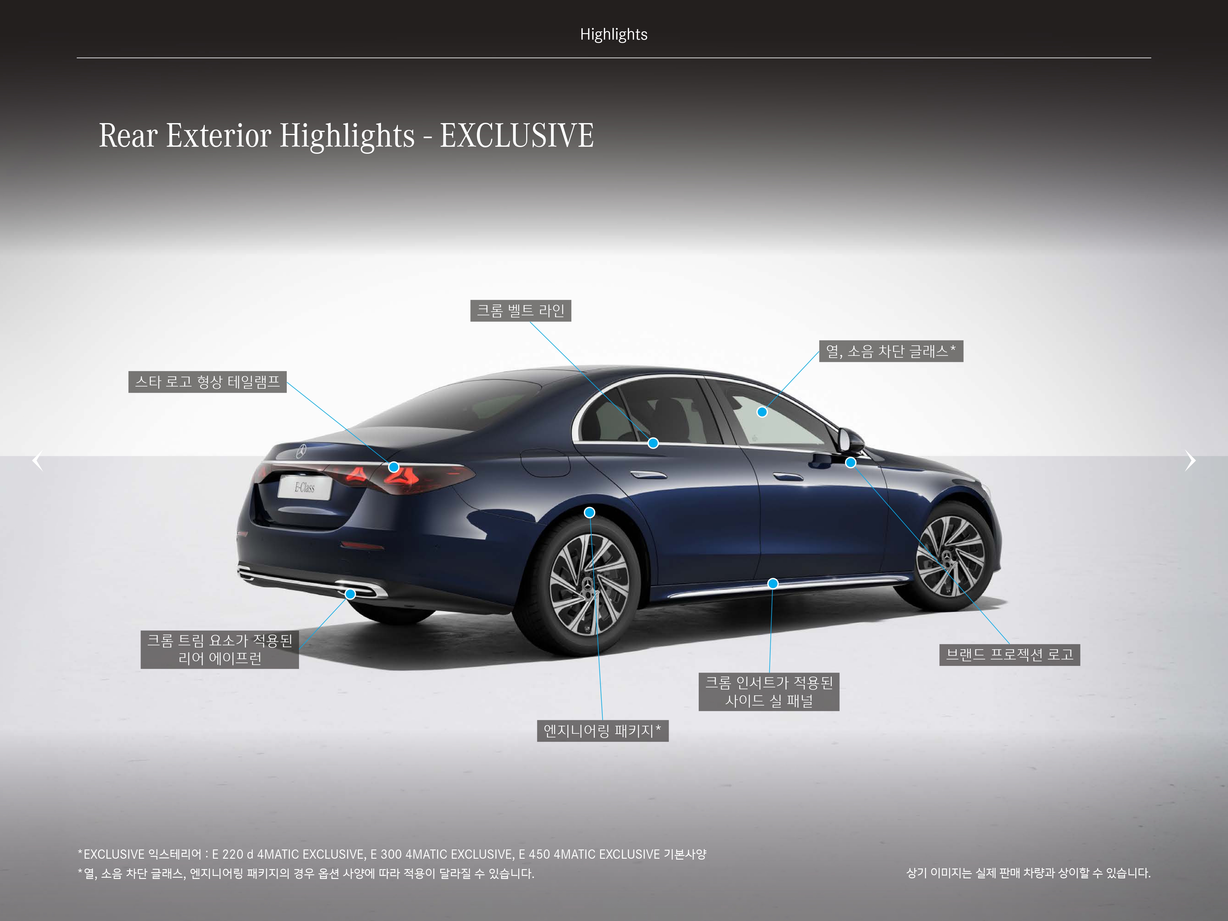 벤츠에서 신형 E클래스부터는 익스클루시브 라인을 밀기로 한 것인지, 출시한 5개의 차종 중 3개의 차종이 무려 익스클루시브 라인입니다.