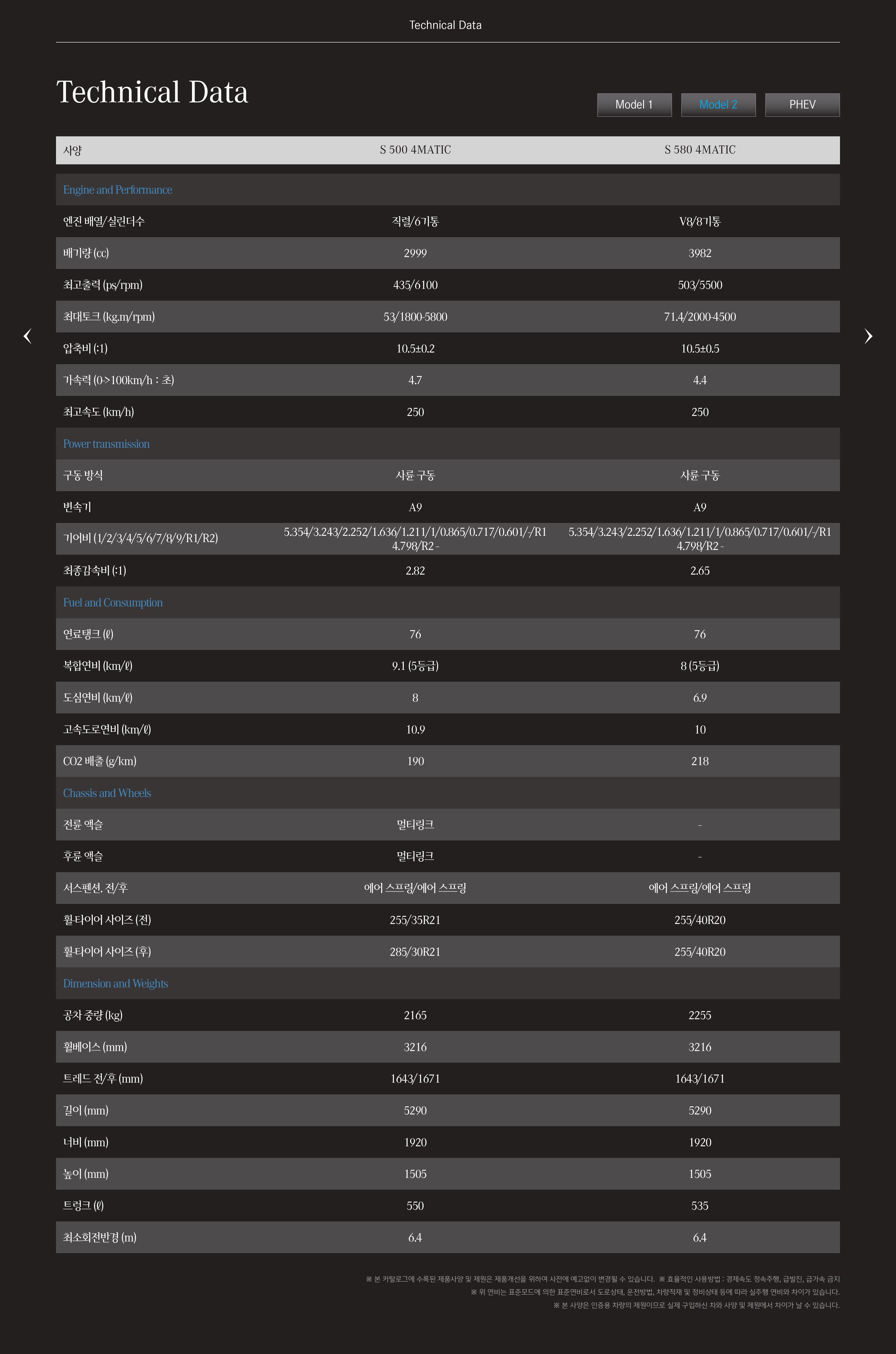 참고로, S580는 8기통, S580e는 6기통입니다.