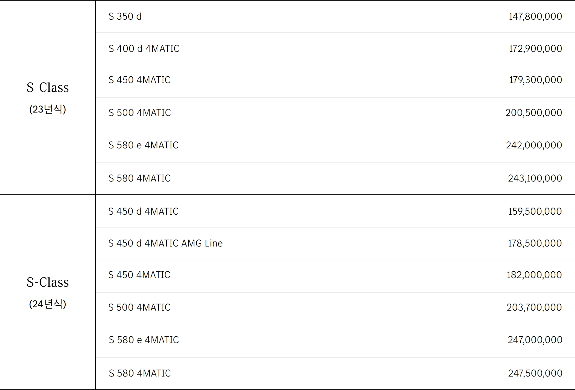 참고로, S350d 및 S400d는 24년식부터 삭제되었습니다.