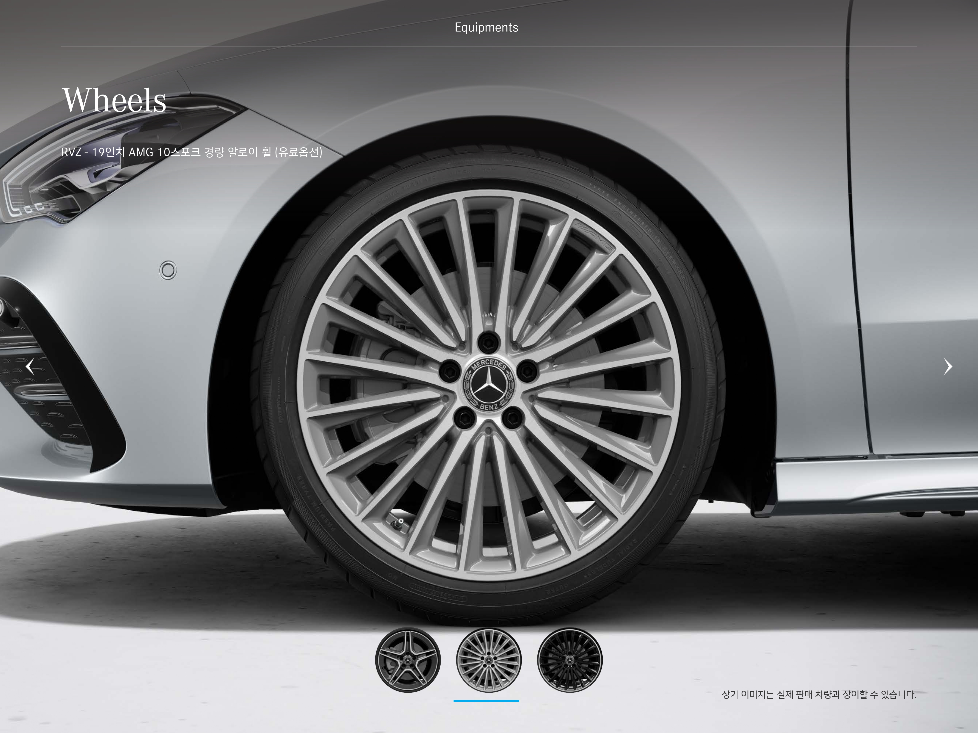 휠 또한 18인치 AMG 5스포크 휠이 적용되고, 선택 옵션으로 19인치 10스포크 및 멀티 스포크 휠이 있습니다.