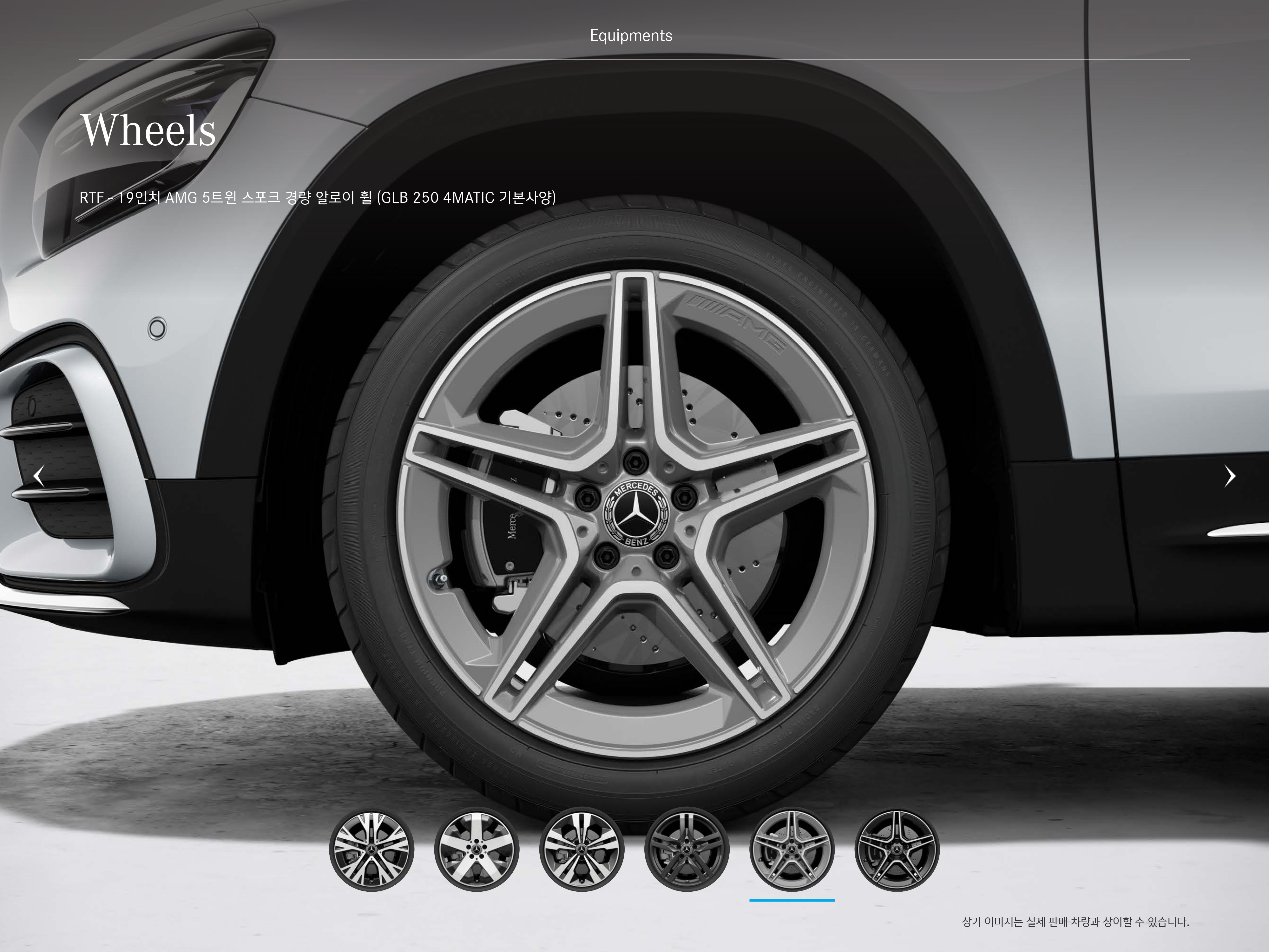 AMG 라인 익스테리어 디자인뿐만 아니라, 측면에서 잘 보이는 휠 역시도 다릅니다.