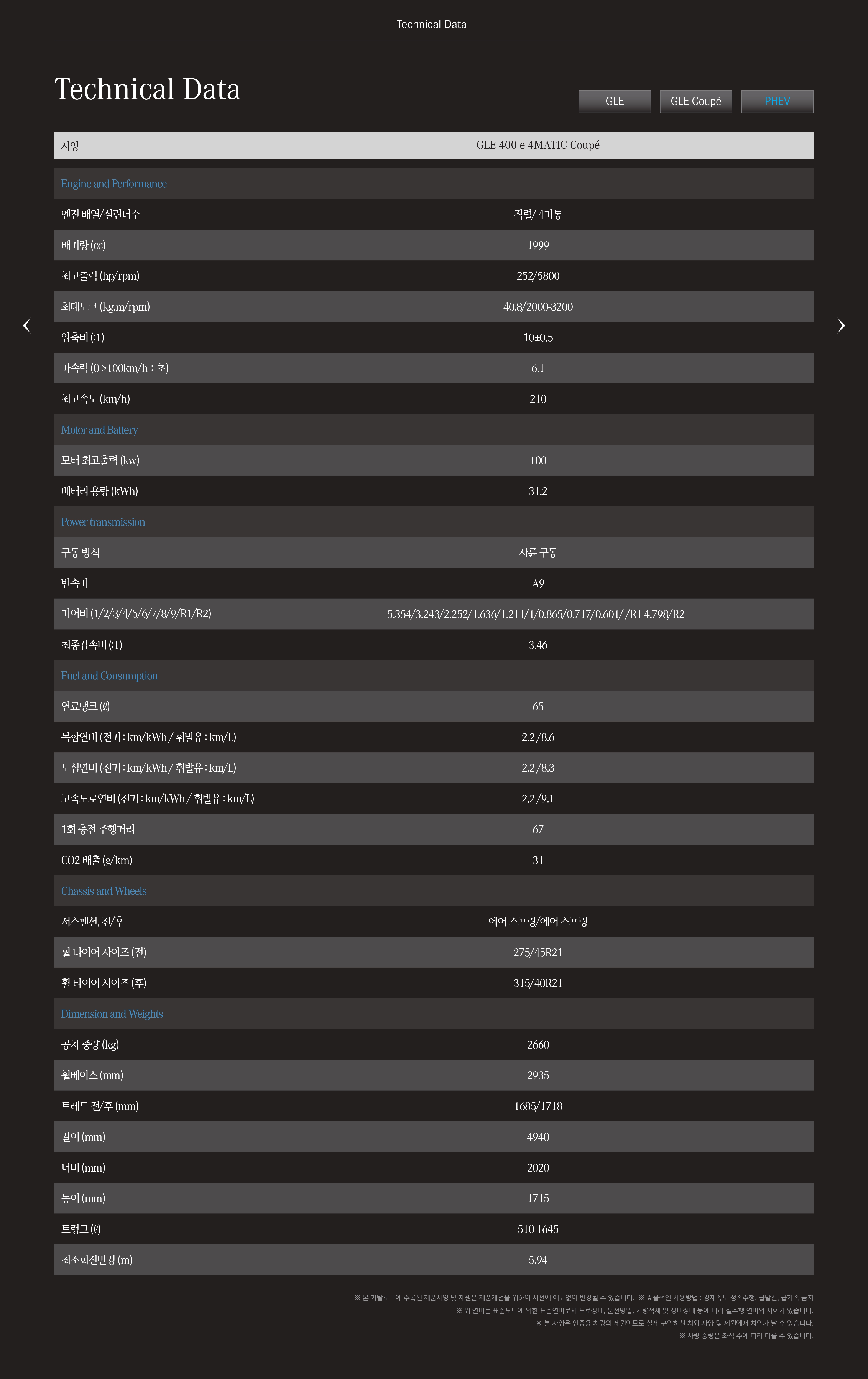 원래는 플러그인 하이브리드 모델인 GLE450e 도 있었는데, 올해 들어 가격표에서 보이지를 않습니다.