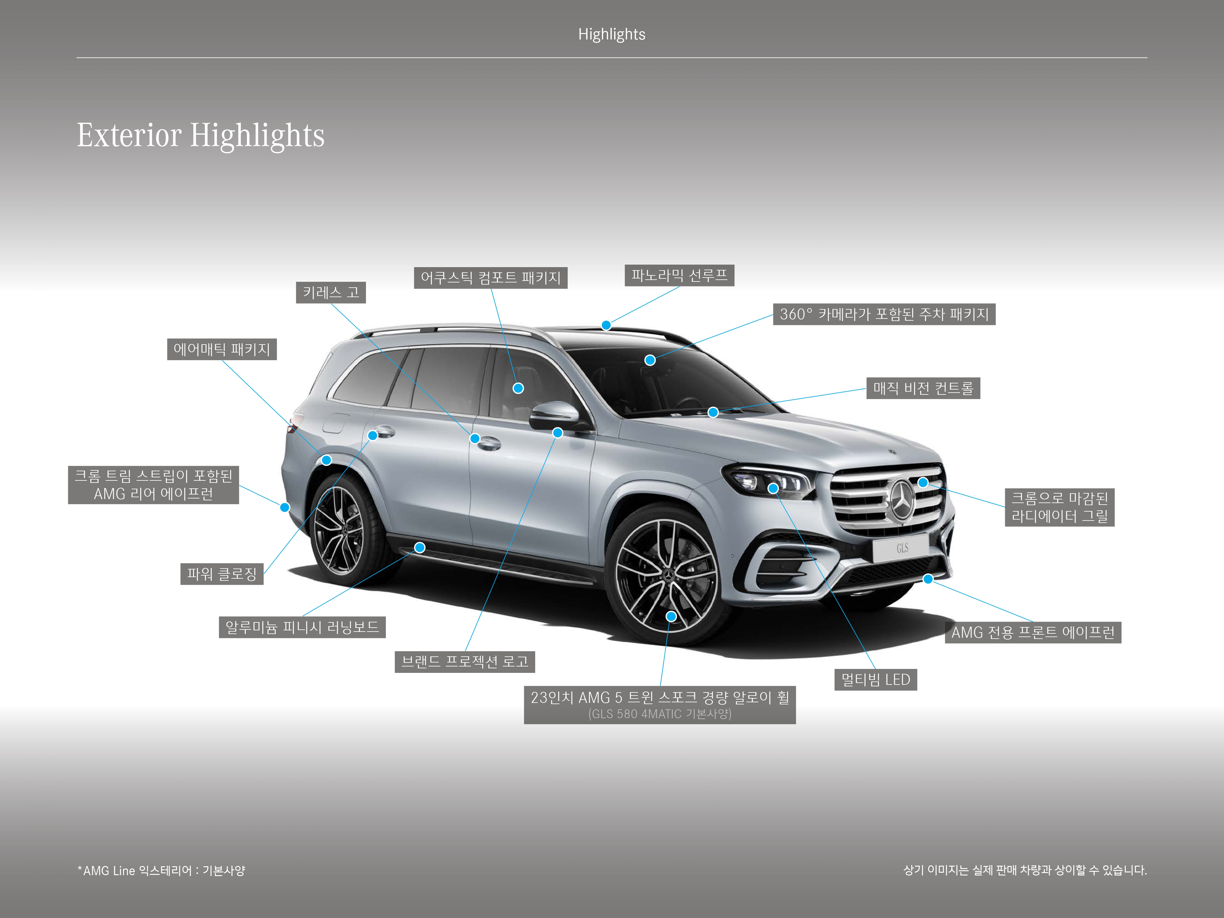 예를 들어, 벤츠는 종종 외부 AMG 패키지 적용 유무를 통해 트림을 구분하곤 했는데, GLS는 AMG 라인 익스테리어 패키지가 기본 적용입니다.