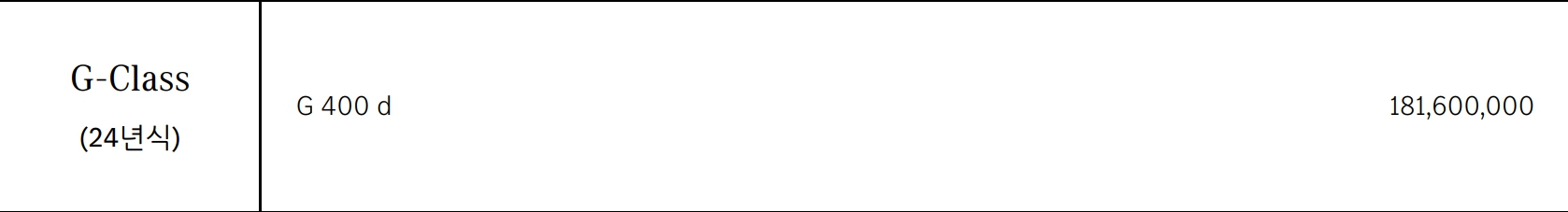 앞서 말씀드린 것과 같이, G400d 단일 모델만 현재 판매 중에 있습니다.