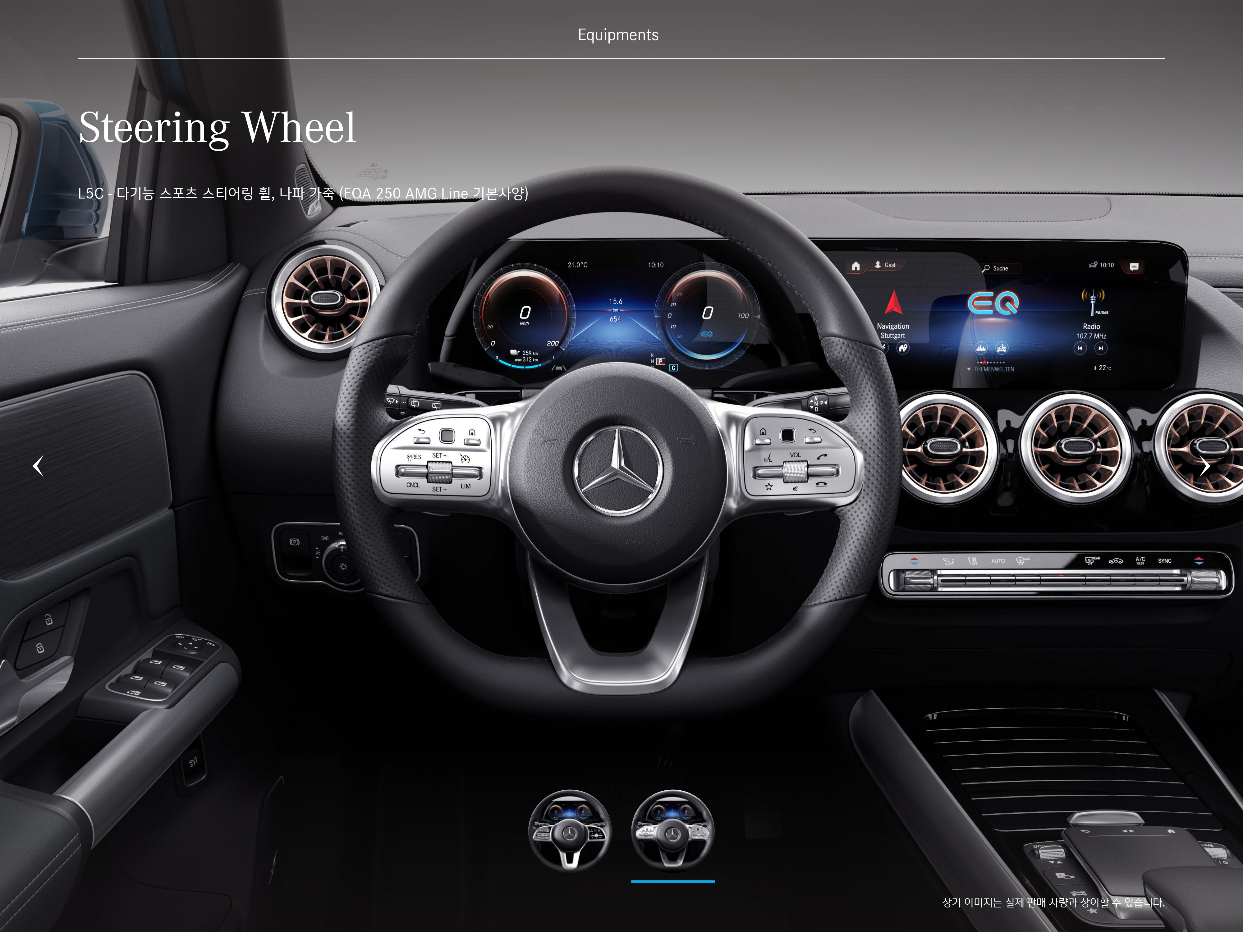 EQA 역시 AMG 라인에만 스포츠 스티어링 휠이 탑재가 되어 디자인이 다릅니다.