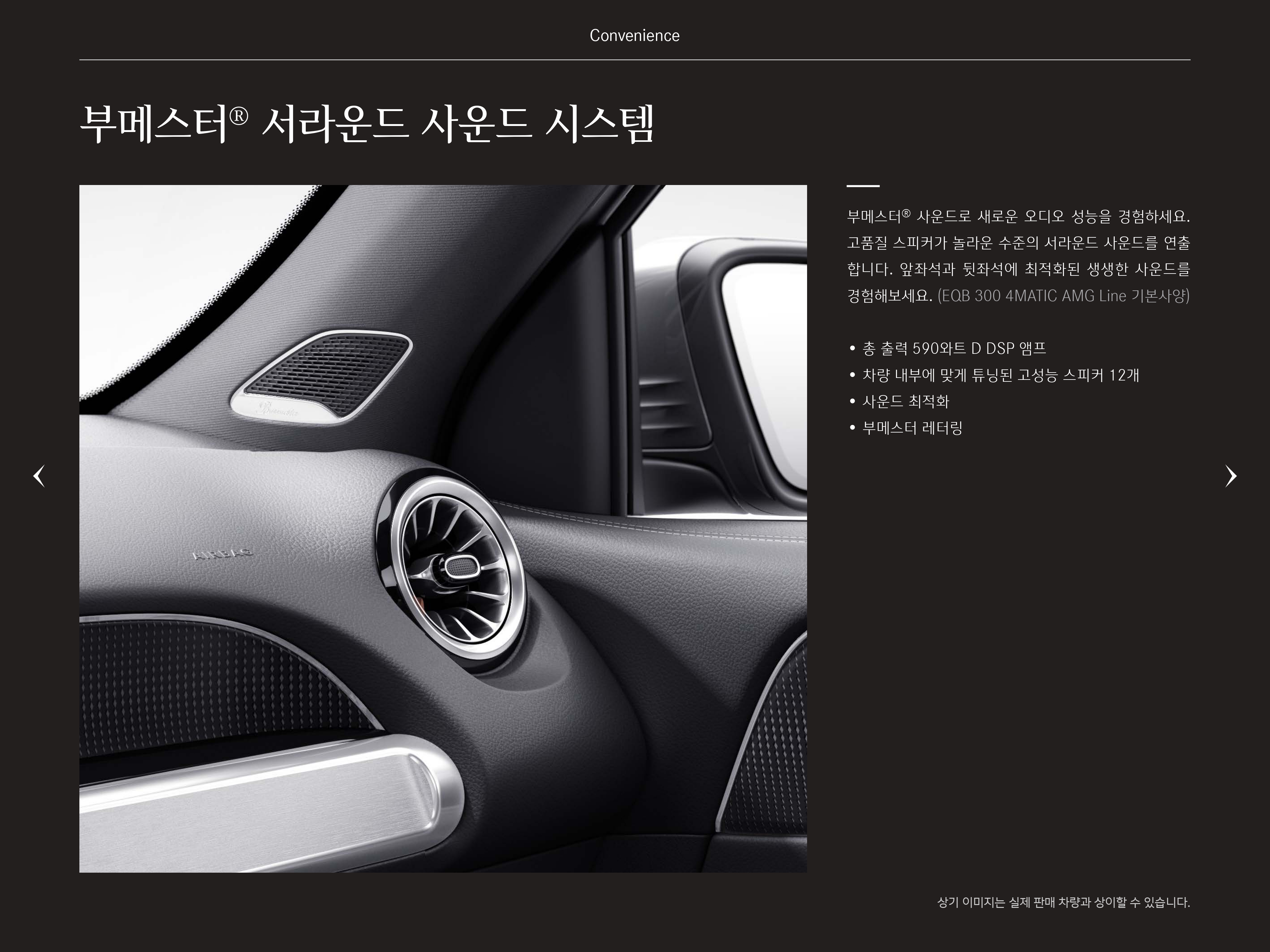 벤츠의 고급 사양에만 들어가는 부메스터 사운드 시스템이 AMG 라인에만 적용이 됩니다.