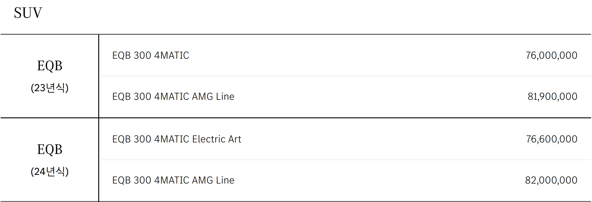 우선, 벤츠 EQB의 가격 먼저 한 번 보실까요?
