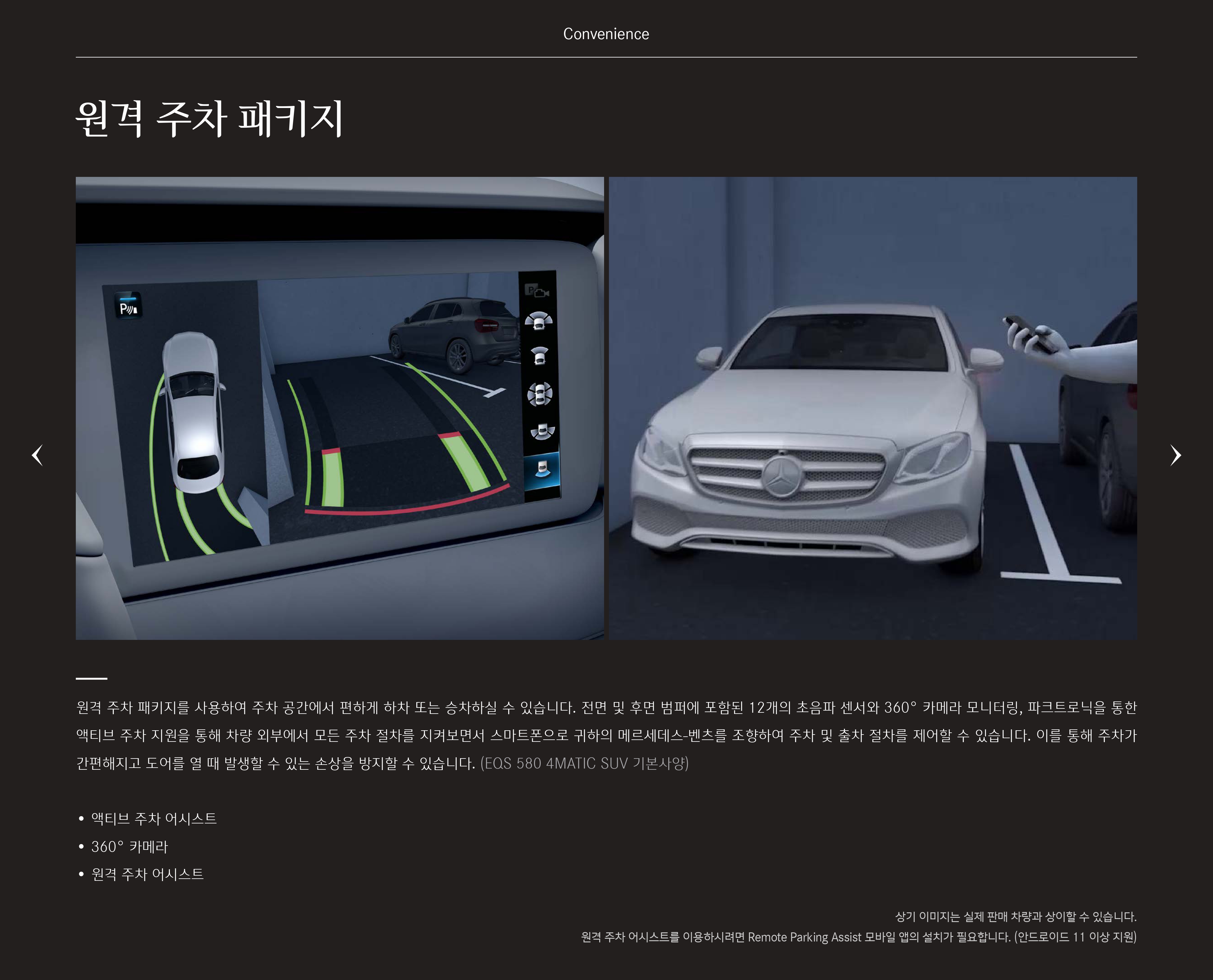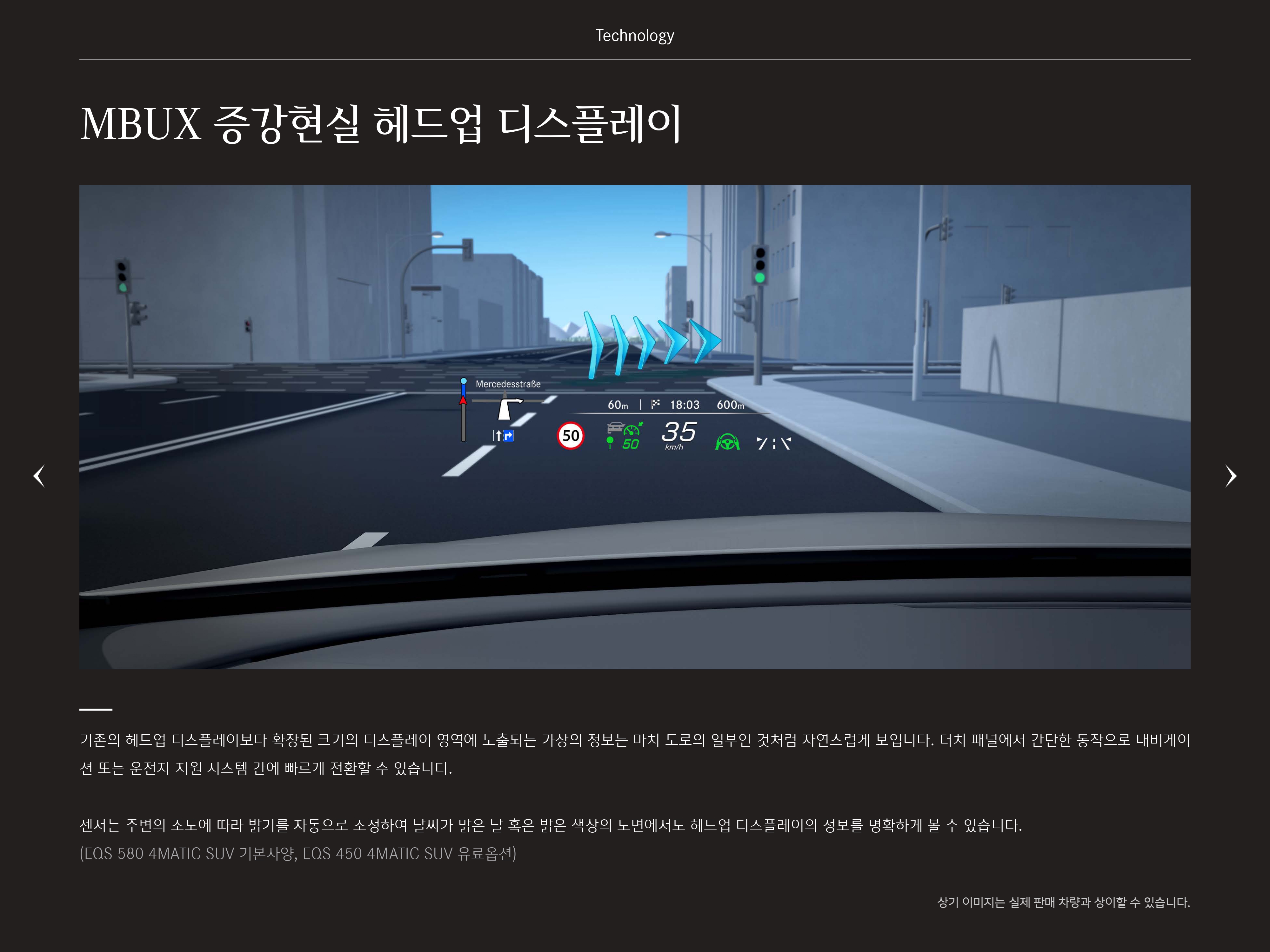 이 외에 EQS580에만 있는 옵션을 몇 가지 살펴보면, 대표적으로는 MBUX 증강현실 HUD