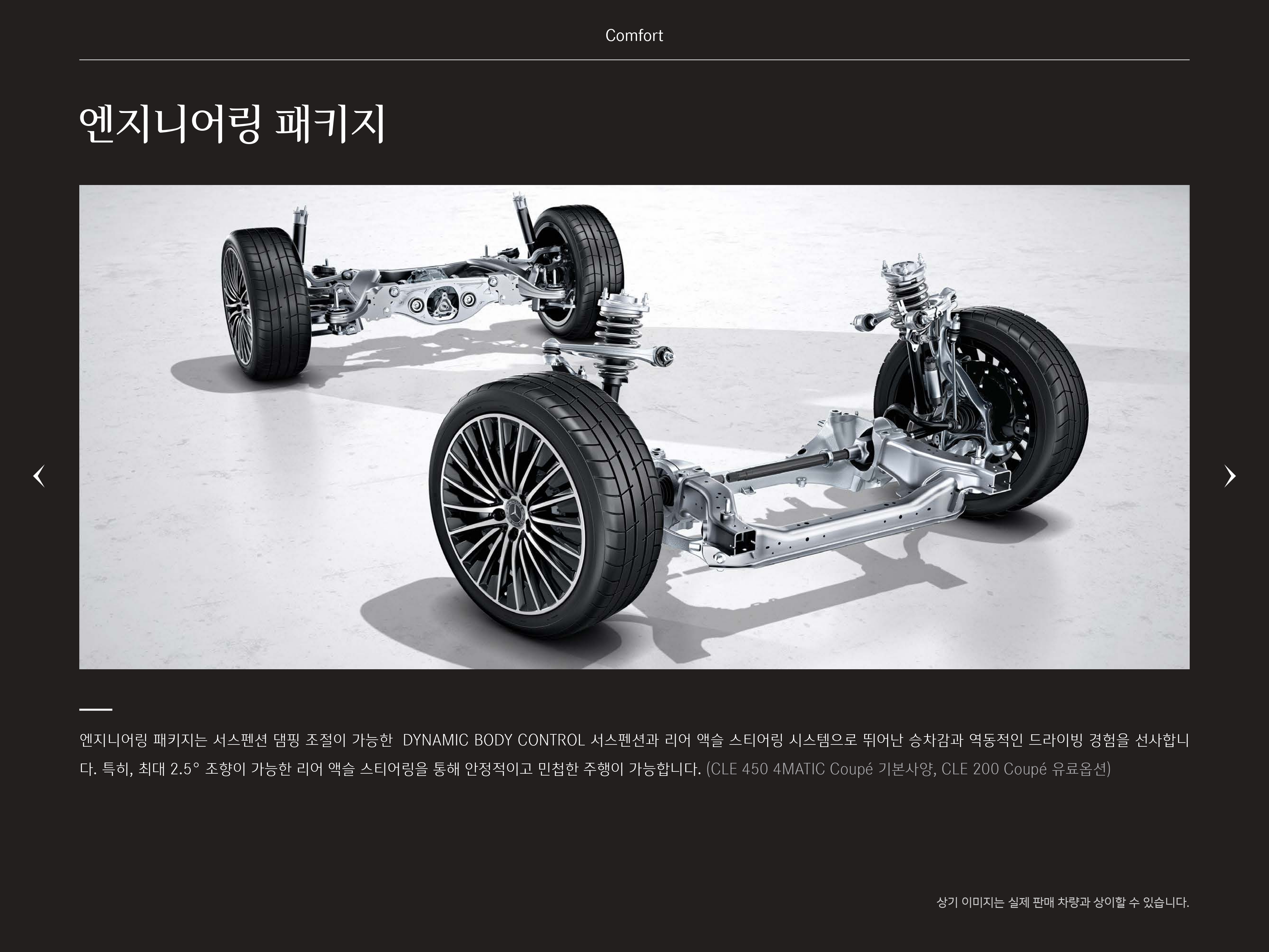 그리고, 실내 옵션은 아니지만 많이들 찾으시는 후륜 조향 및 다이내믹 바디 컨트롤 서스펜션 옵션도 CE450에만 들어갑니다.