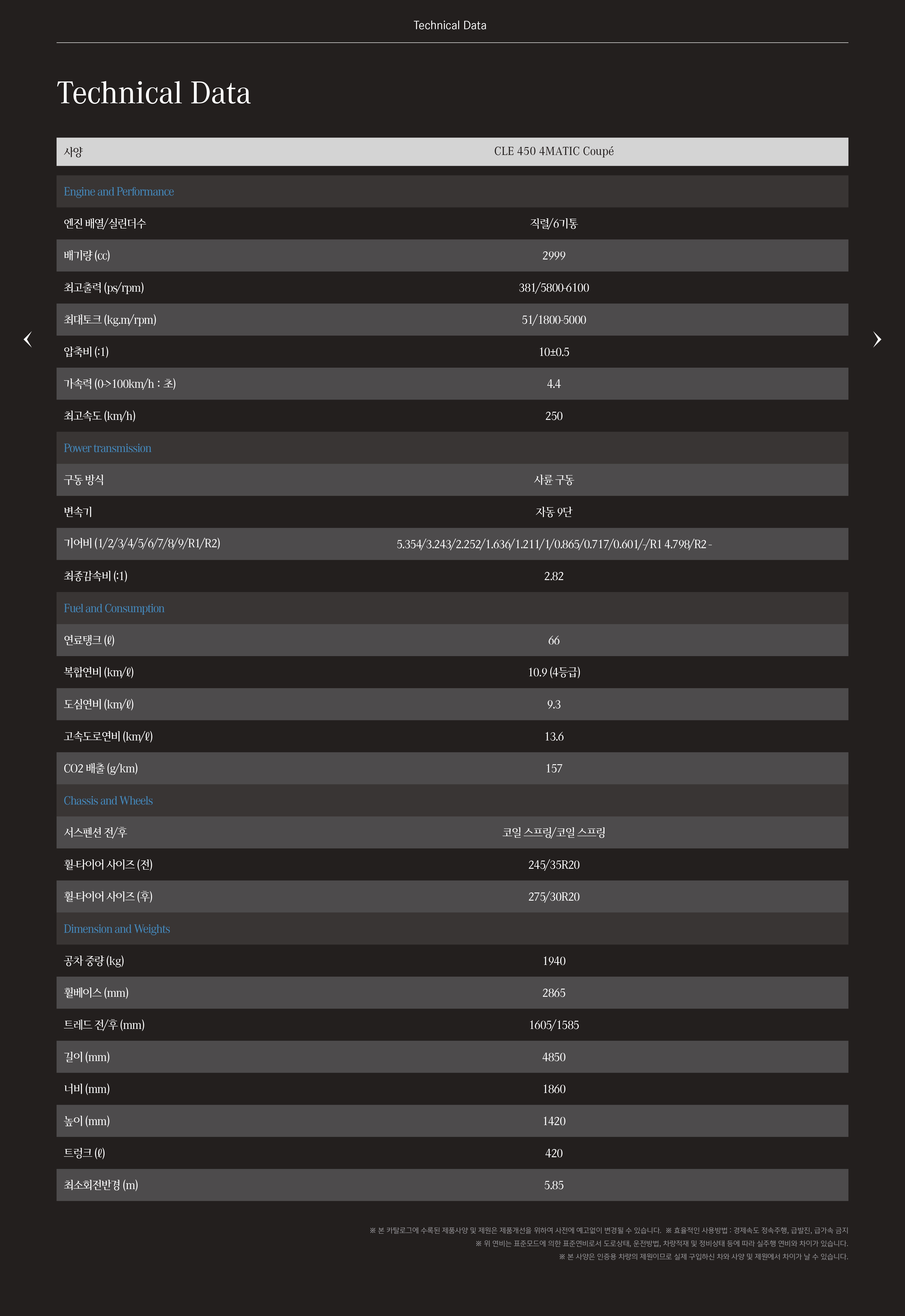 두 모델 간의 제원표도 함께 공유드리면 좋겠지만, 아직까지는 CLE450만 먼저 나왔습니다.