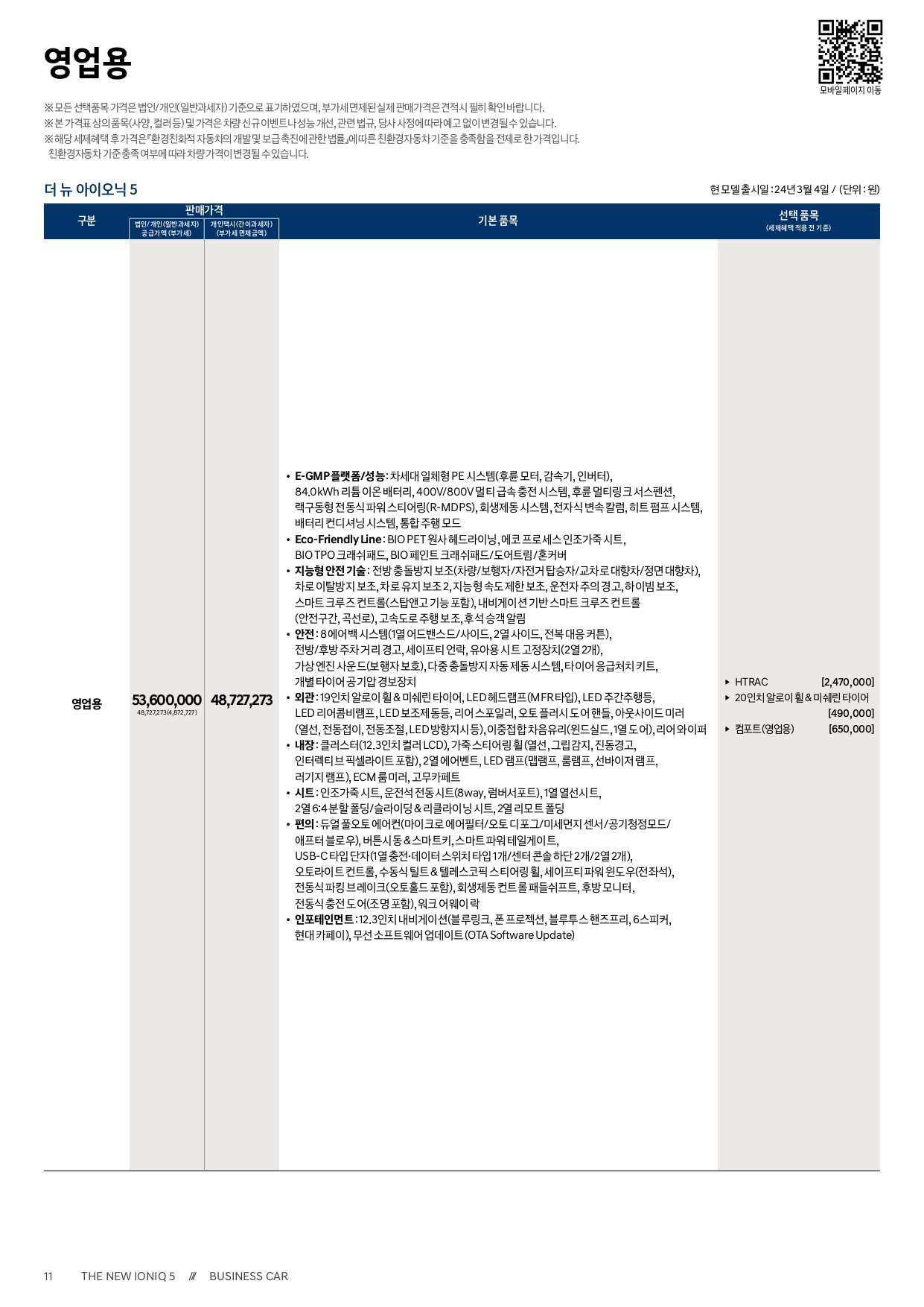 다음은 전기차에게 있어 중요한 전비 및 주행가능거리가 나와있는 2024 아이오닉 5 제원표 입니다.