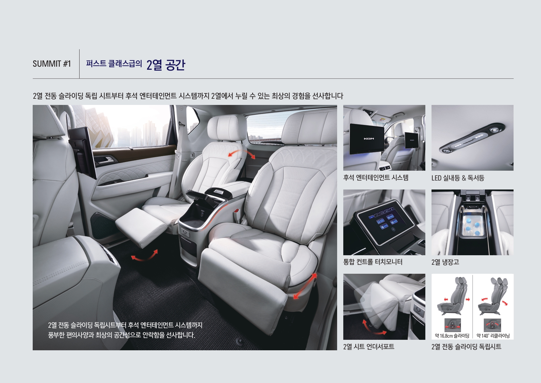 2열의 고급감을 극대화한 모델이기에, 2열 전동 슬라이딩 독립시트 + 후속 엔터테인먼트 시스템 등