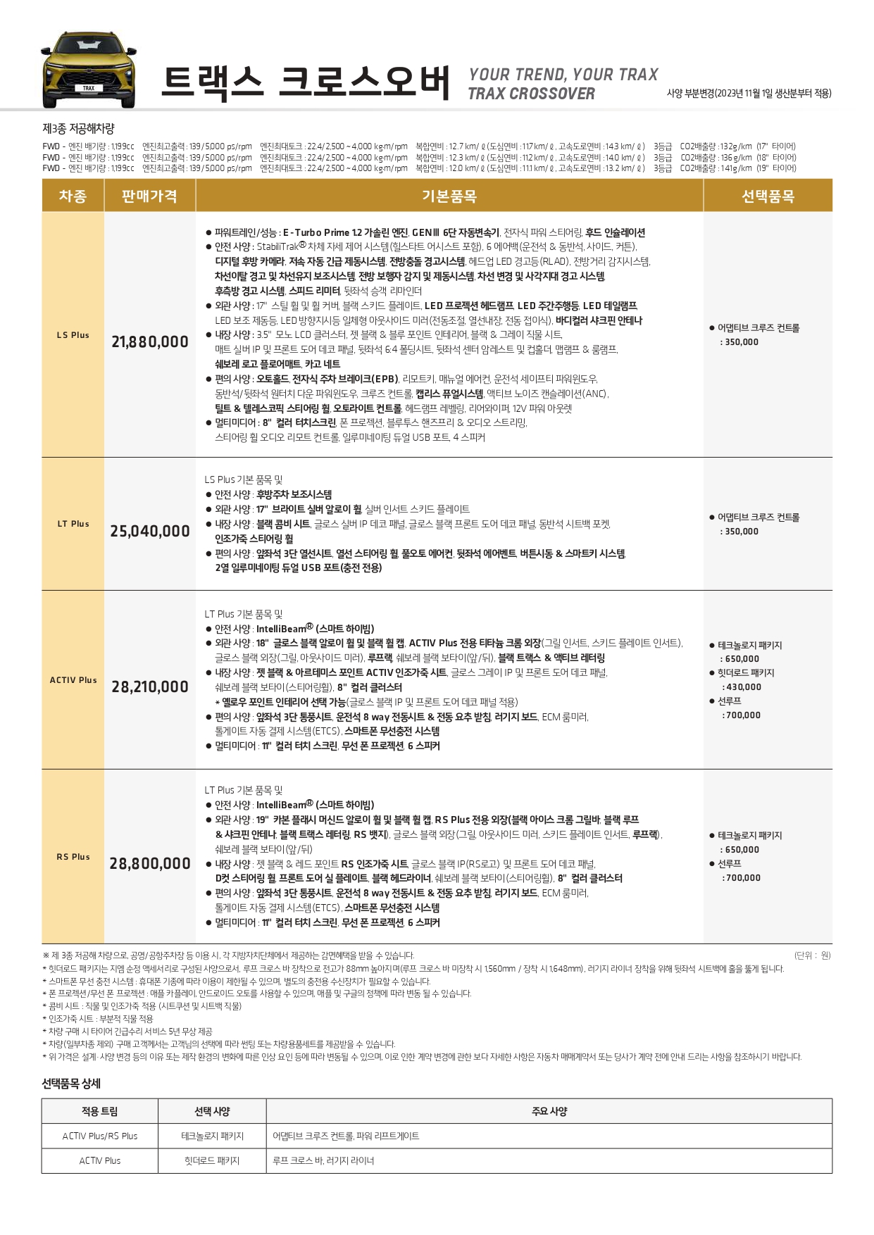 2025 쉐보레 트랙스 가격표 및 원본 카탈로그를 아래에 올려드리니, 필요하신 분께서는 받아서 보시면 도움이 될 것 같습니다.